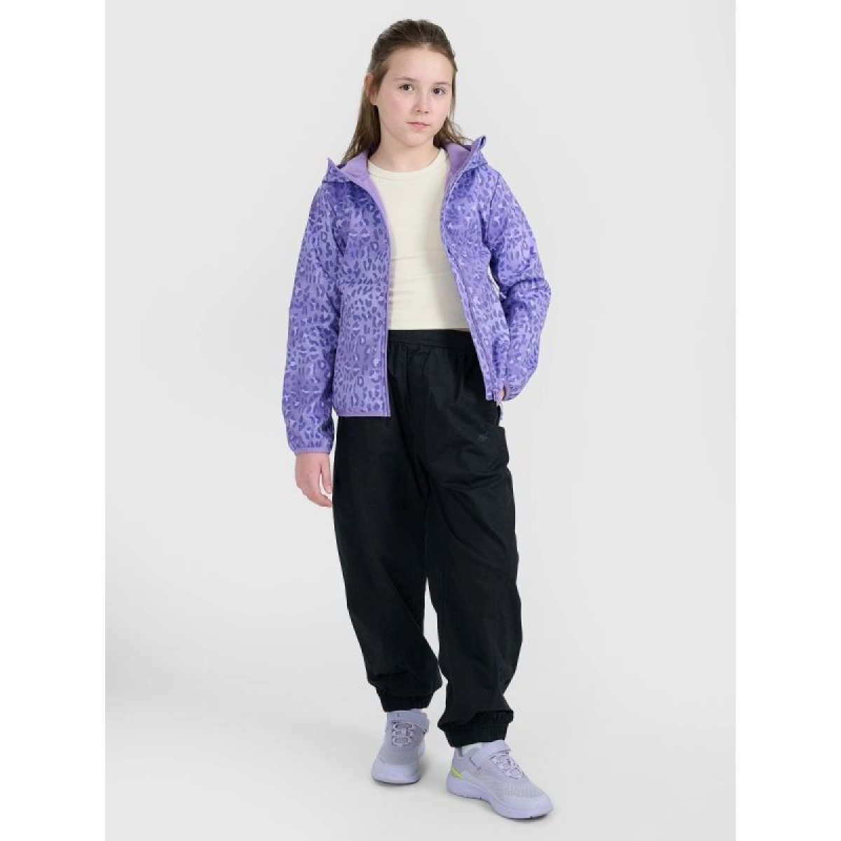 The 4F Girls' Softshell Jacket is a lightweight and reliable shield against wind and cold, designed for active girls who need a comfortable jacket for changeable weather. Thanks to the NeoDry 5000/3000 membrane and a water-repellent coating, it protects against light rain, while the soft microfleece lining provides pleasant everyday warmth. The windstopper construction effectively blocks the wind, while the integrated hood, high collar, and elastic trim enhance comfort. It's the perfect choice for school, walks, and everyday activities. See also other models in the girls' jackets category and learn more about 4F Warm technology and the 4F brand.