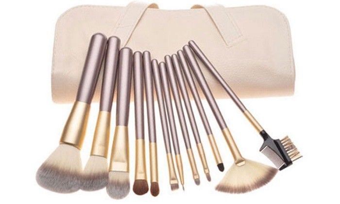 12pc Makeup Brush Set: Complete set for face, eyes, and lips.