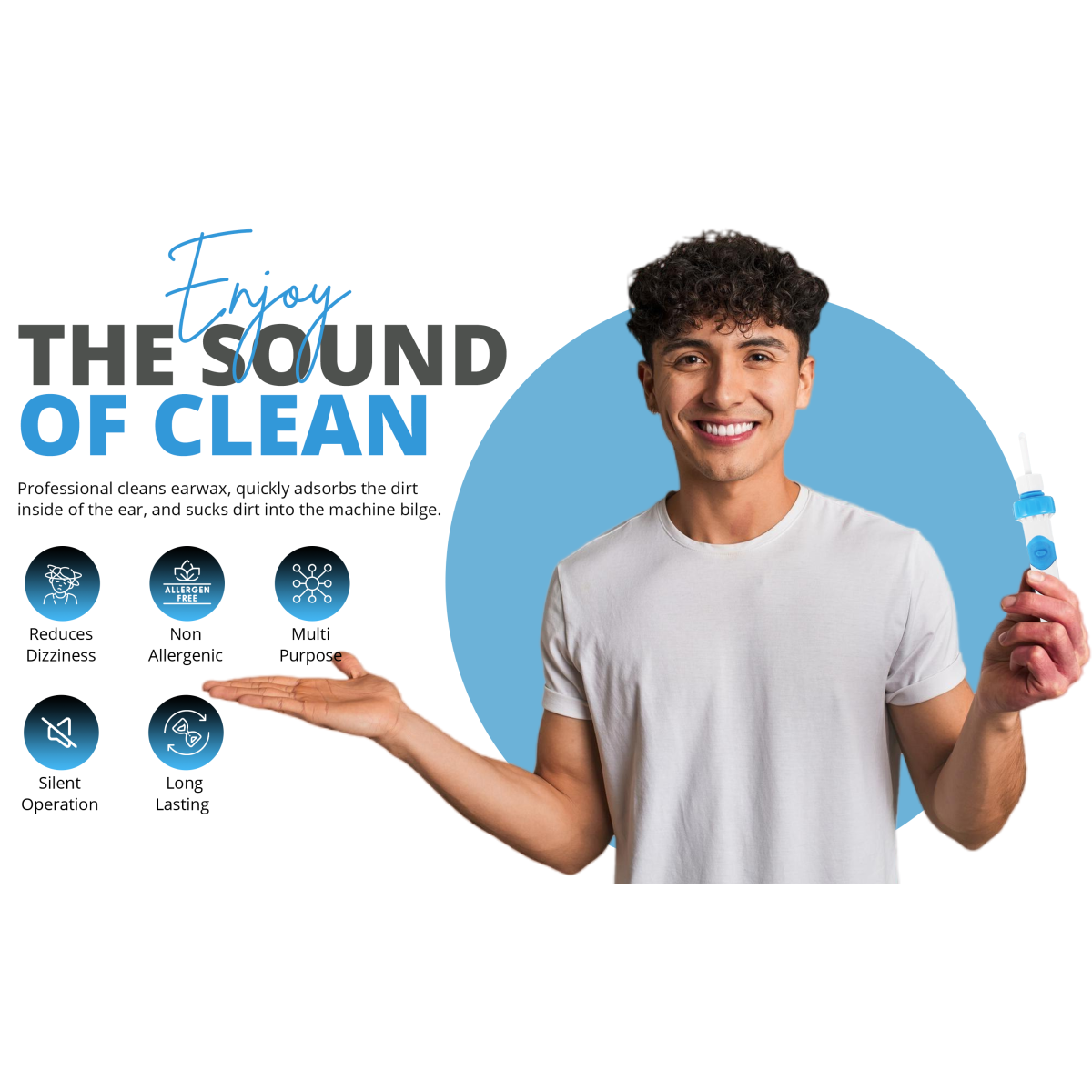 Loosen, clear and clean light dirt and wax from the ear with vibration and suction