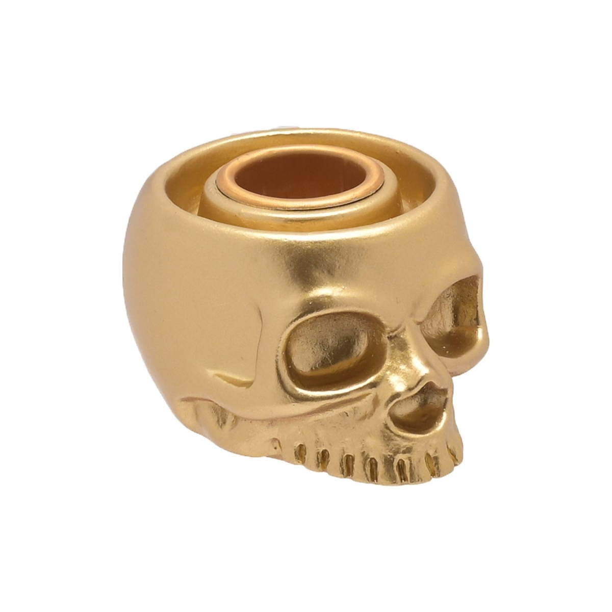A gold skull candlestick holder by HOCUS POCUS NOVELTIES�.