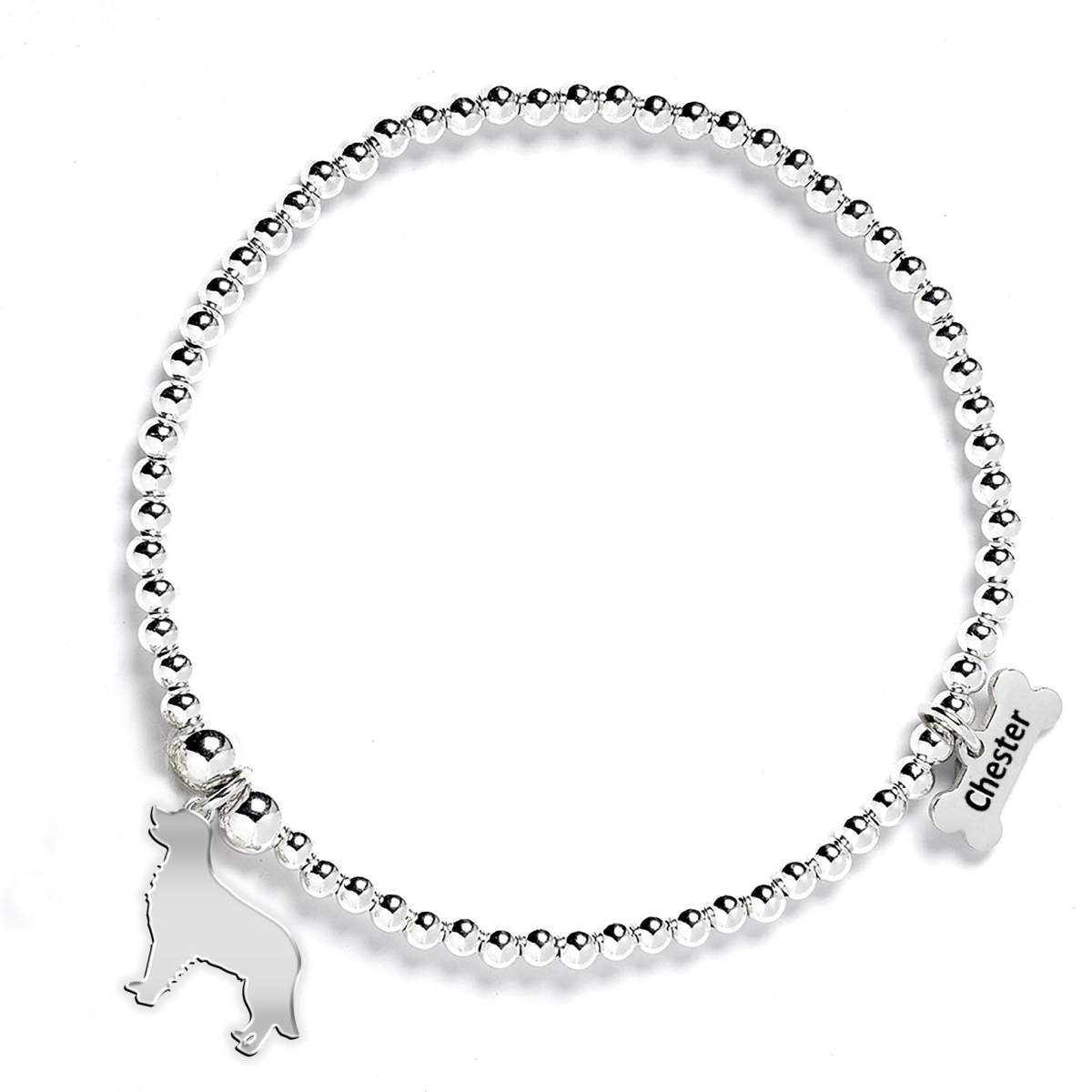 Golden Retriever Silhouette Silver Ball Bead Bracelet - Personalised