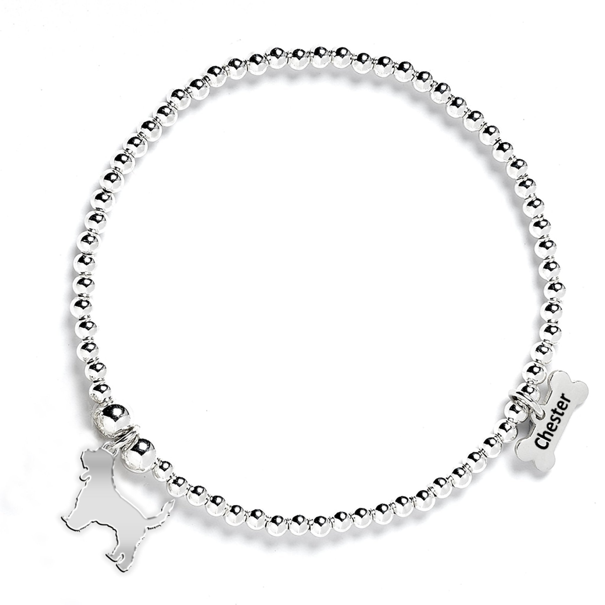 Grand Basset Griffon Vendéen Silhouette Silver Ball Bead Bracelet - Personalised