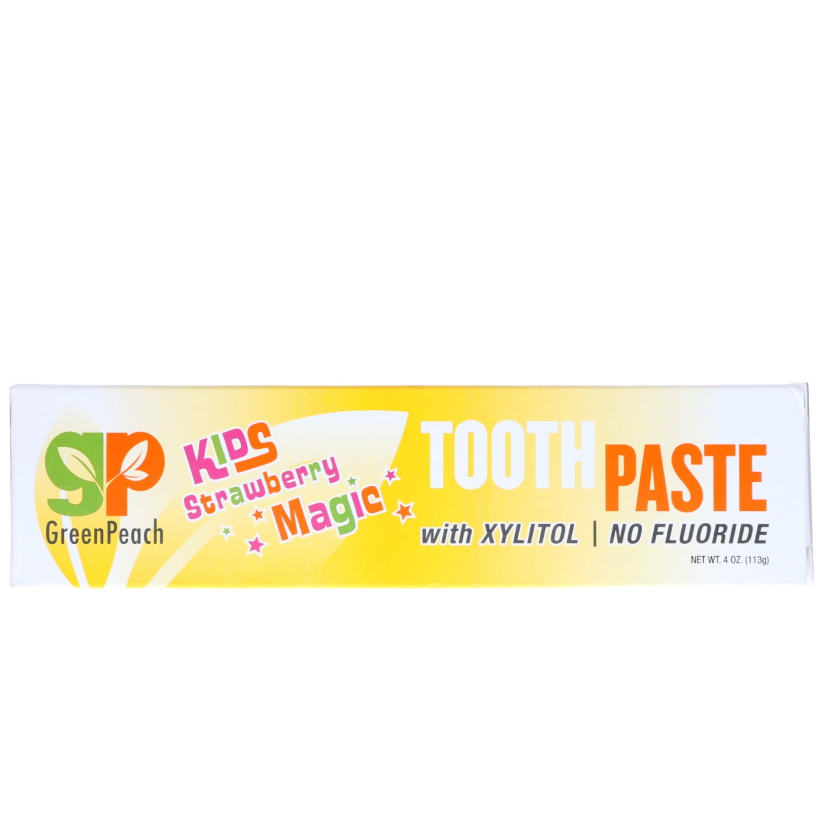 With Xylitol - No Fluoride No SLS or any of its Derivatives No Harsh Chemicals No Preservatives No Gluten No Artificial Colors or Flavors No Saccharine No Paraben At GreenPeach, we strive to formulate products which are truly kid safe. "Strawberry Magic" toothpaste, along with proper daily brushing, delivers a blend of fully natural and gentle substances to help our kids with the health of their teeth and gums. The use of ingredients such as Xylitol, Calcium Carbonate, Propolis, Tee Tree Oil, Baking Soda, and CoQ10 helps to reduce plaque and tartar build up, may reduce the risk of tooth decay and cavity, helps strengthen and protect tooth enamel, whitens and clean teeth, and freshens breath. Lastly this product does not contain any unnecessary harmful ingredients. Kid's health and safety matter to us.