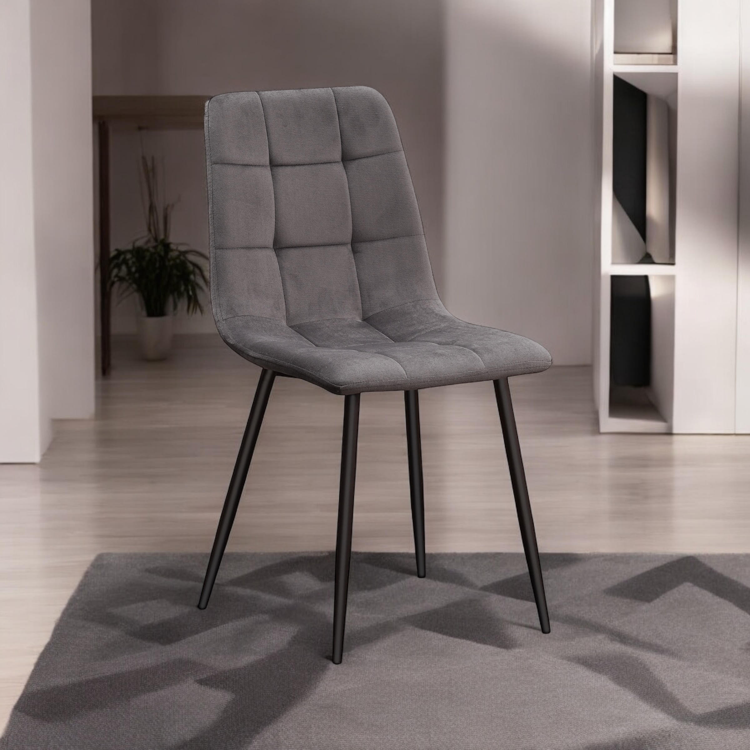 GREY FABRIC CHAIR BLACK METAL LEGS