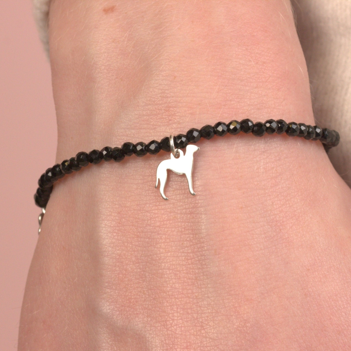 Celebrate your beloved Greyhound with this personalised Greyhound Silhouette bracelet made with your choice of semi precious stones. Whether it’s a thoughtful birthday gift for a dog mum or a heartfelt keepsake for a pet parent, this bracelet is a beautiful way to honour the special bond you share. Choose from a Black Onyx, Rose Quartz, Red Aventurine, Amethyst, Opal or Turquoise bracelet.