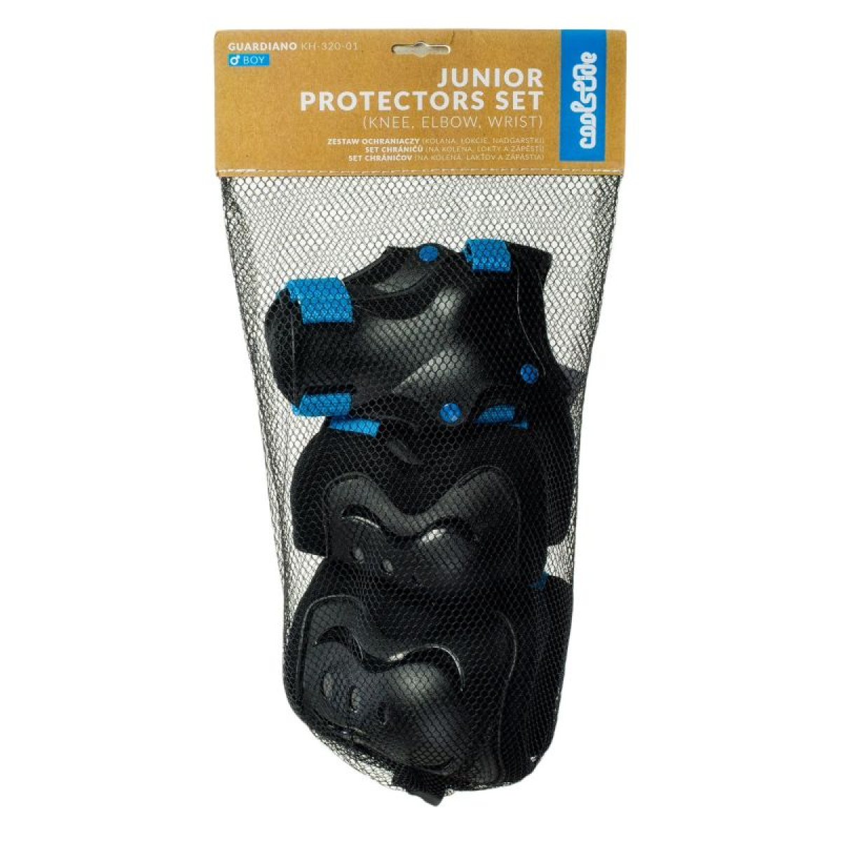 PROTECTIVE SET SIZE: S, M, L MATERIAL COMPOSITION: KO86 CLOTH, FOAM, PE HIGH IMPACT SPECIFICATION: - 2 KNEE PADS - 2 ELBOW PADS - 2 WRIST PADS