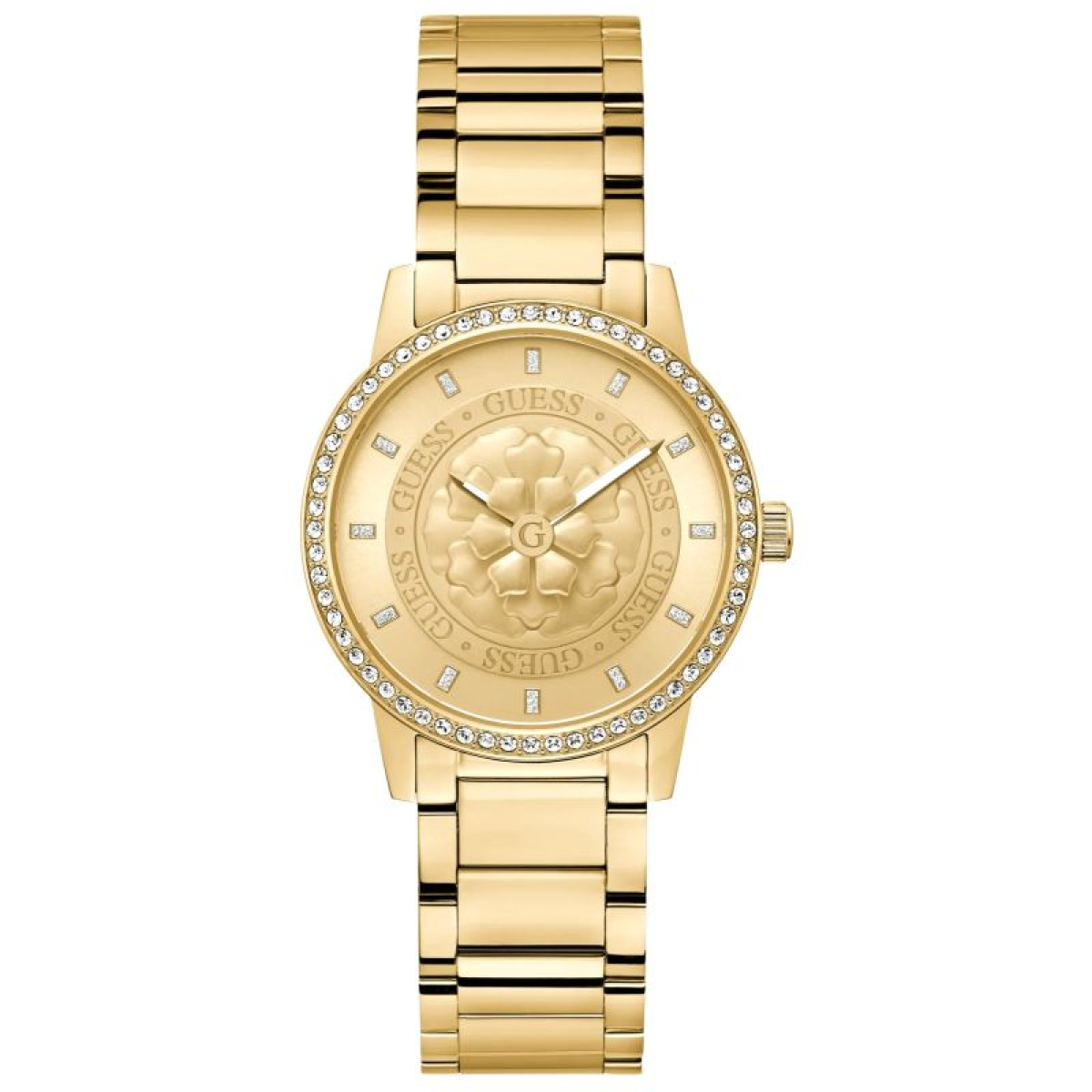 The Guess Petral Women's Watch is a bold blend of modern style and feminine elegance. A striking dial with refined details lends it character, while the stainless steel case and sturdy bracelet ensure durability and comfort for everyday wear. This timepiece is designed for the woman who appreciates expressing her confidence and individual style. The Guess Petral is perfect for both everyday looks and special occasions, serving not only as a practical accessory but also as a symbol of class and prestige.
