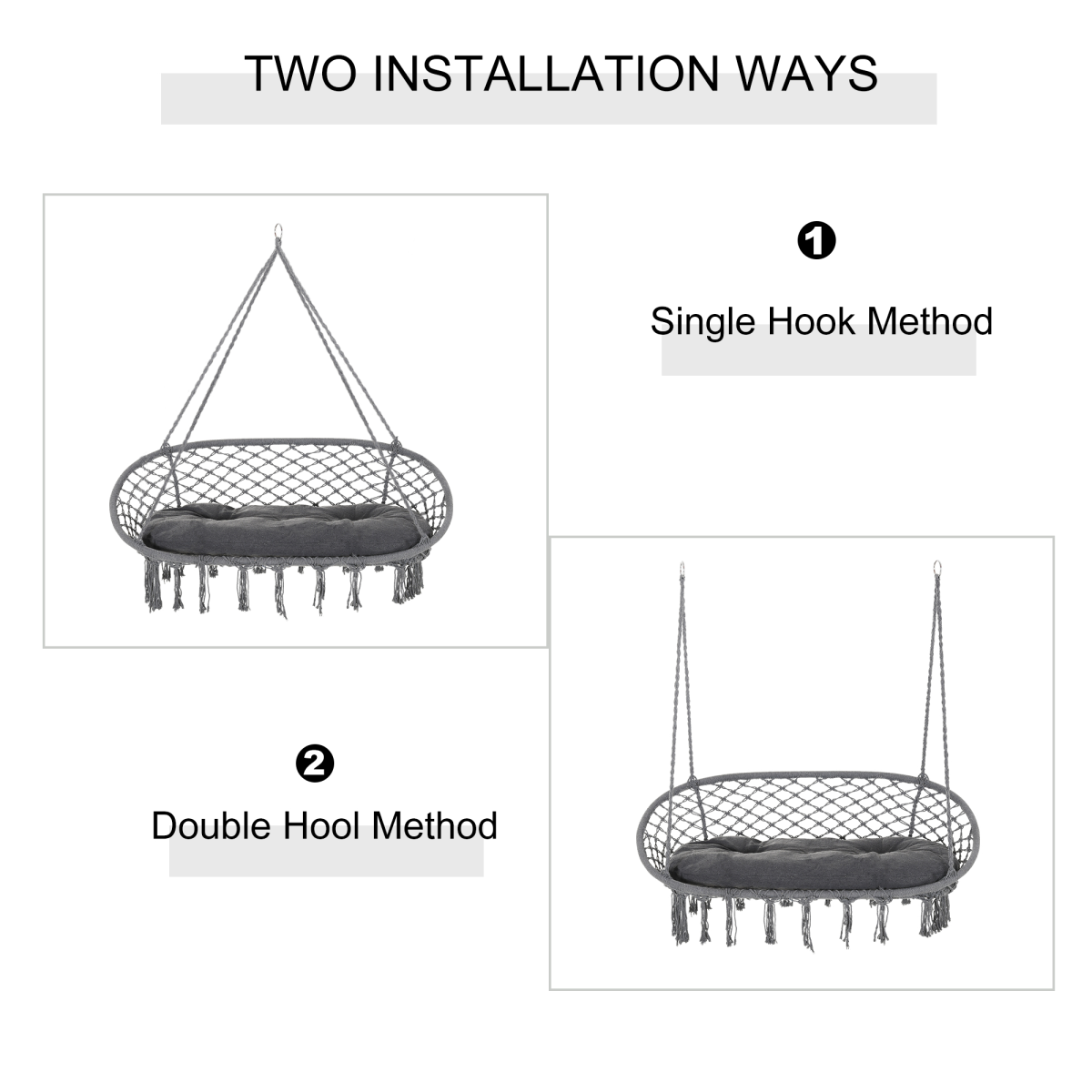 Hanging Hammock Chair Cotton Rope Swing & Metal Frame Large Macrame, Dark Grey