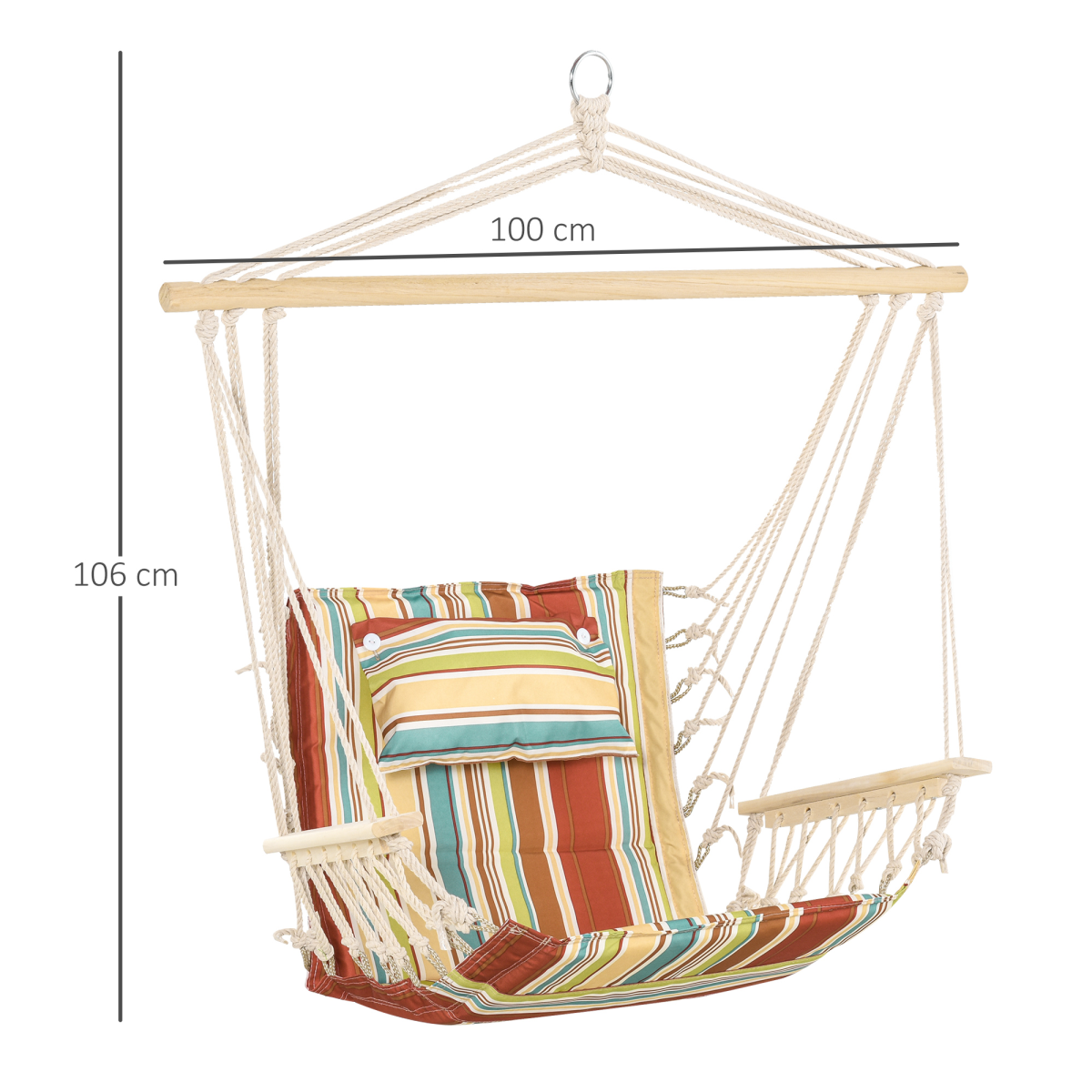 Cocoon yourself in comfort, creating the ultimate hideaway place outdoors with this hammock seat from Outsunny. Its rigid structure, which handles up to 105kg, is formed from thick high-quality grade rope for safety, with the seat securely attached for full support. It's finished with wooden armrests and a wooden bar on the top to keep the balance central and stable. A spot you'll love sinking into for a long afternoon under the sun.