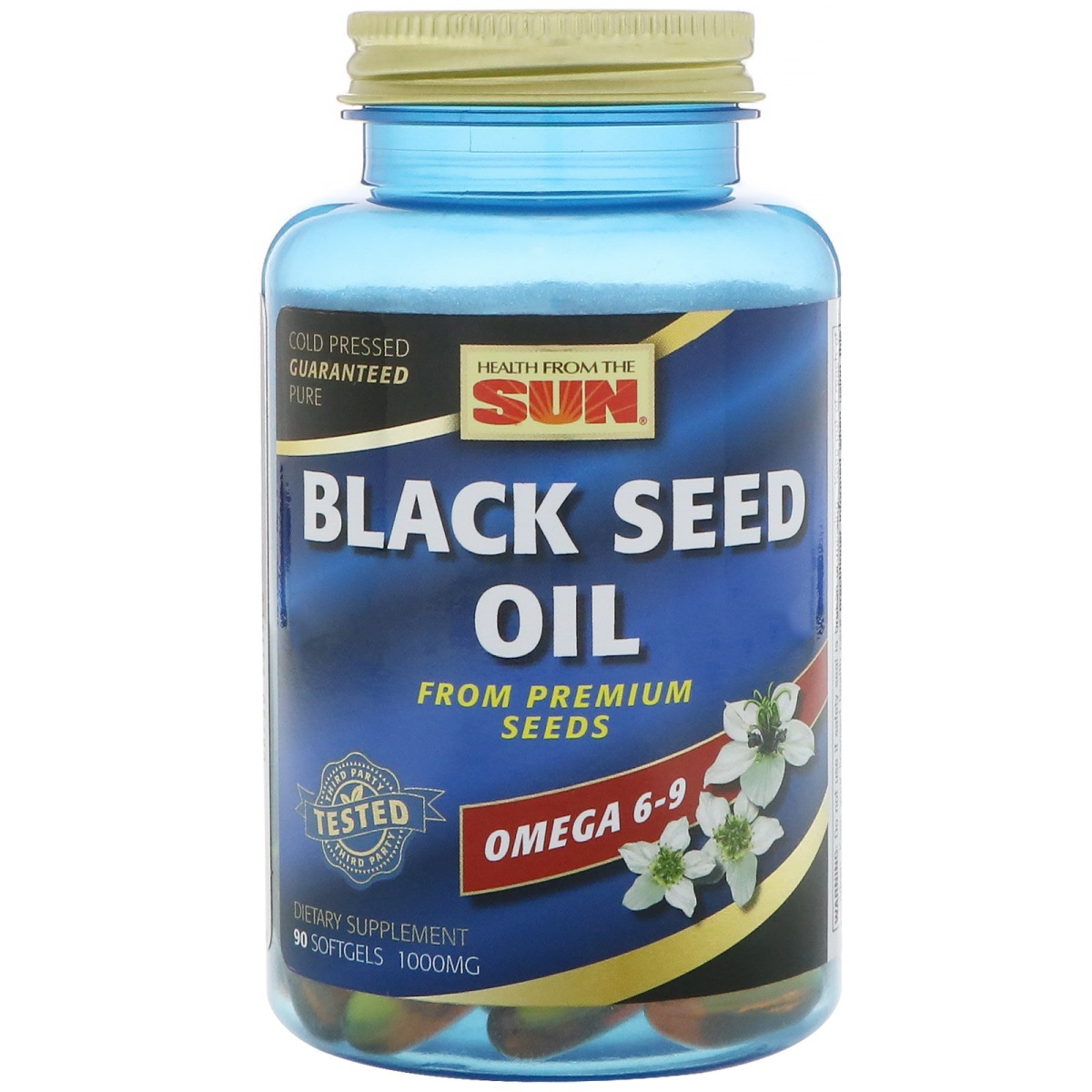 Cold Pressed Guaranteed Pure From Premium Seeds Third Party Tested Omega 6-9 Dietary Supplement Discussion: Black Seed Oil, also known as Nigella Sativa, has been used as an herbal remedy with origins in Egypt as far back as 3,300 years ago. Black Seed Oil has many uses and is still widely popular because of its reputed nutritive qualities and powerful antioxidant properties. Health From The Sun Black Seed Oil typically providing Thymoquinone and Nigellone, may provide nutritive support for healthy immune system function and the digestive track. In addition to Thymoquinone and Nigellone, Black Seed Oil typically provides Omega- 6 & 9, Palmitic acid, Stearic acid and Eicosadienic acid. Cold-pressed rigorously quality tested to guarantee purity, potency and truth-in-labeling.