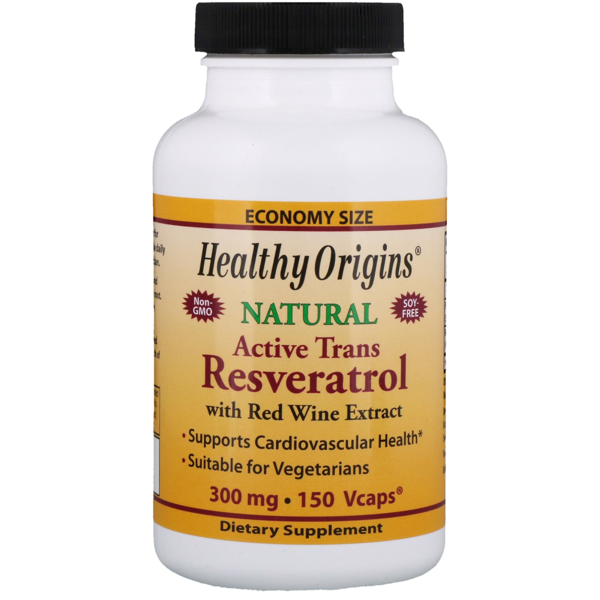 Economy Size Non-GMO Soy-Free Natural With Red Wine Extract Supports Cardiovascular Health Suitable for Vegetarians Dietary Supplement High Potency Resveratrol is a natural polyphenol found primarily in grape skins and knotweed root. Resveratrol may help support a healthy cardiovascular system. Healthy Origins Resveratrol is combined with Red Wine Extract for an extra punch of polyphenols.
