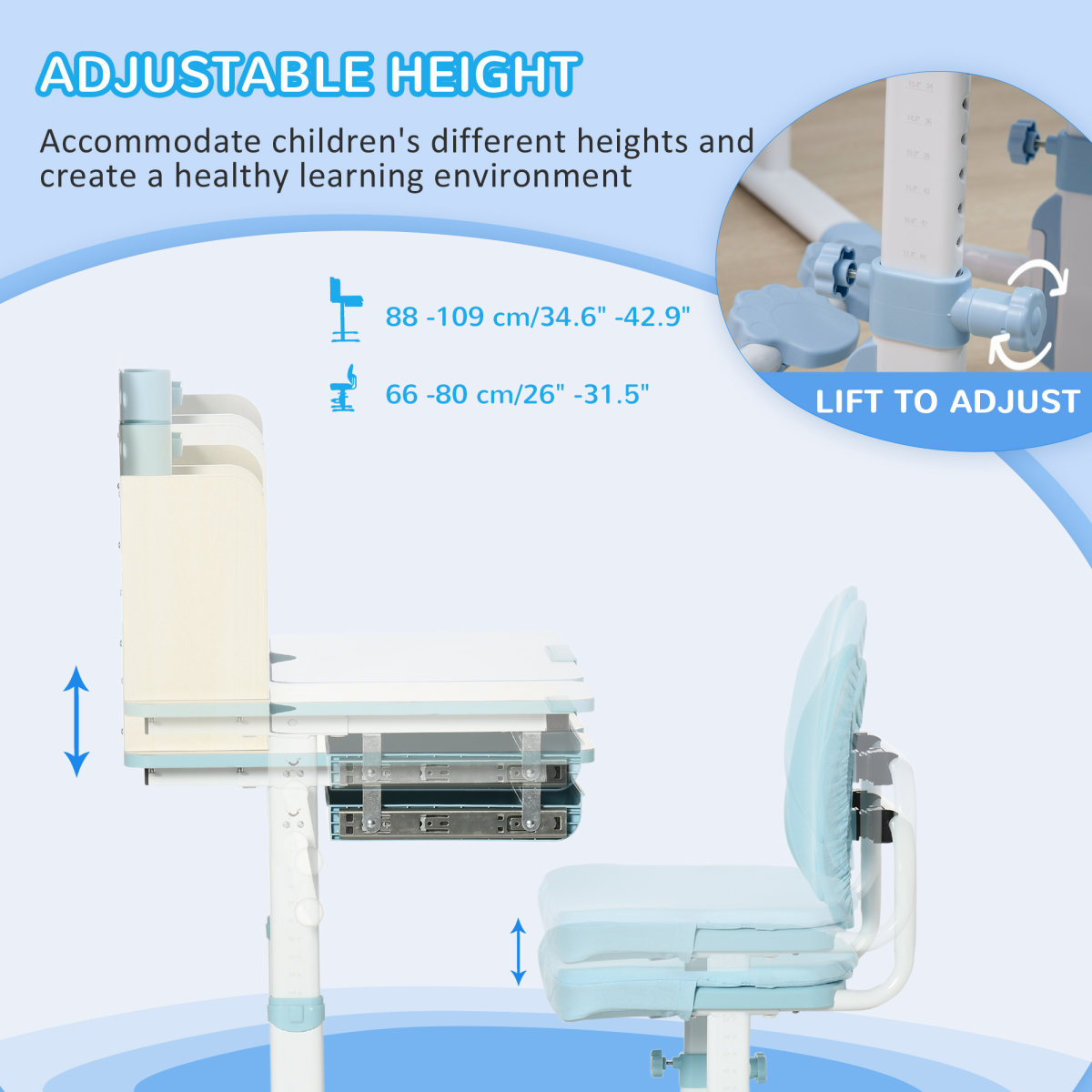 Height Adjustable Kids Desk and Chair Set, for Ages 3-12 Years - Blue