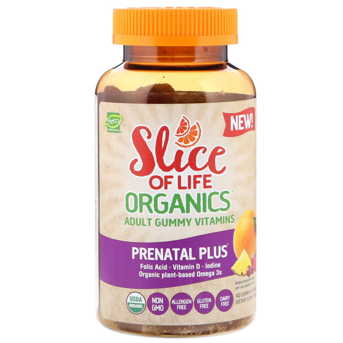 Hero Nutritional Products, Slice of Life s, Adult Gummy Vitamins, Prenatal Plus, Natural Pineapple, Orange, Cran-Raspberry, 90 Gummies