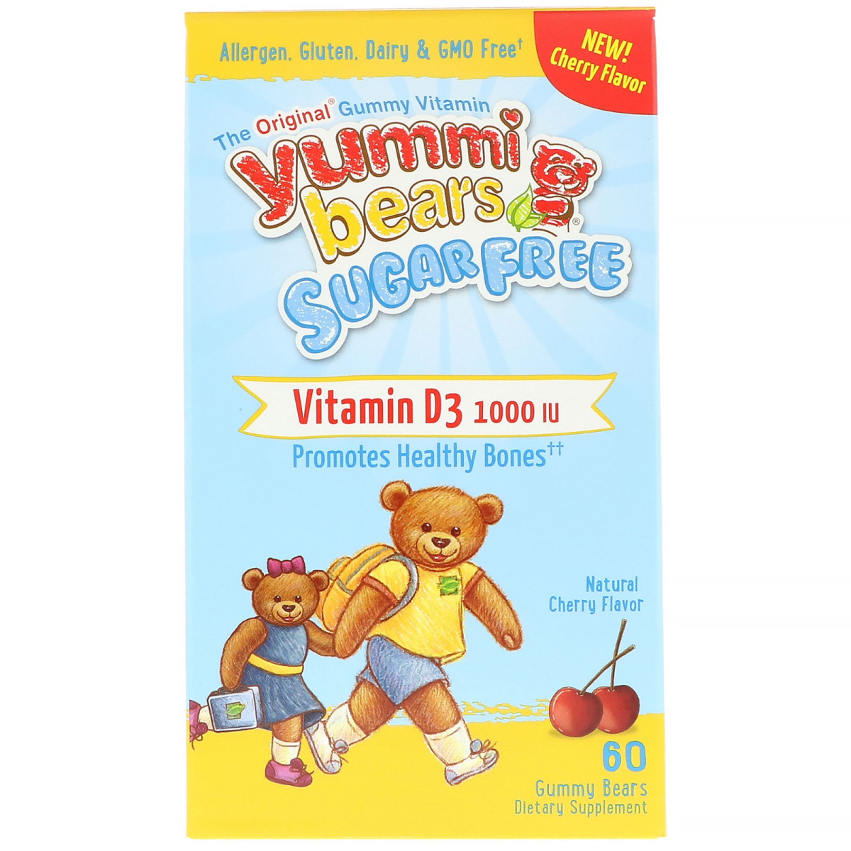 Allergen, Gluten, Dairy & GMO Free†The Original Gummy Vitamin Promotes Healthy Bones Dietary Supplement Free of Artificial Colors & Flavors Purity - Potency - Quality Tested Hello! We are Oliver and Olivia, nice to meet you! At Hero we believe in embracing a healthy, happy life through positive nutrition. That's why in 1997 we invented Yummi Bears, The Original Gummy Vitamin, and in 2007 we created Slice of Life for adults. We are passionate about providing essential nutrients in delightfully yummi, fun to take gummies for the whole family that are made with natural ingredients and lots of love. For us, pure love deserves pure nutrition. With love, Oliver, Olivia and Everyone at Hero Nutritionals. Healthy Bones, Happy Teeth. Yummi Bears Sugar Free Vitamin D3 help support bone, oral and immune health in a delightfully yummi gummy that has no added sugar, sugar alcohols or artificial sweeteners. Calcium Absorption - Increases calcium absorption D3 Vitamin - 250% DV per serving. Bone Health - For strong bones. Immune Health - Supports immune function. Sugar Free - No sugar added. Oral Health - For strong teeth. †Free of: GMO, sugar alcohols, gluten, yeast, wheat, dairy, eggs, soy, salt, peanuts, shellfish, fish, artificial flavors, artificial colors and artificial preservatives.