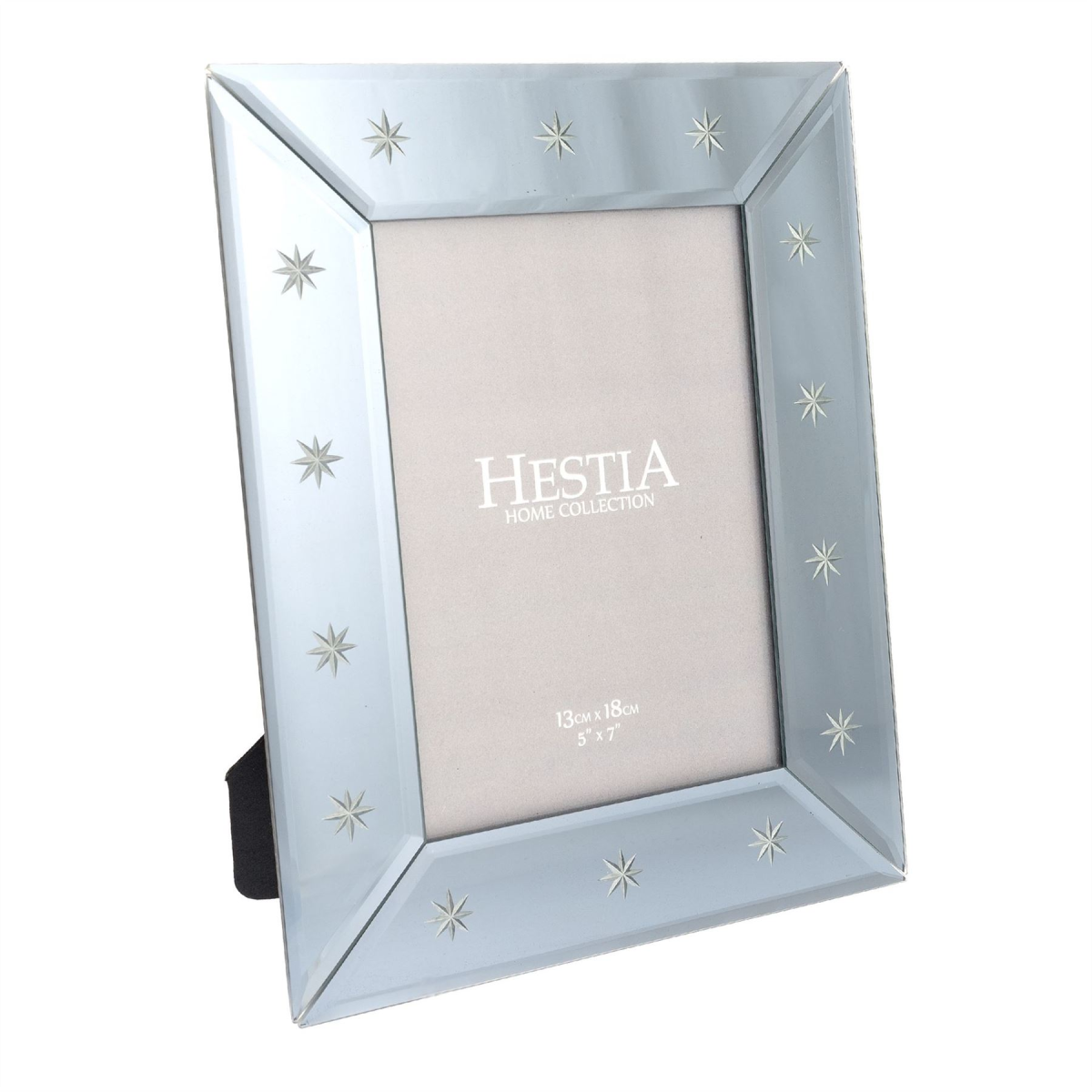 Proudly display the stars in your life with this stunning 5"x7" photo frame. With a unique tinted glass and star design, this accessory is well-fitted to a trendy home. Details: - Tinted glass - 5" x 7" aperture - Landscape/portrait - Strutted - Silver stars