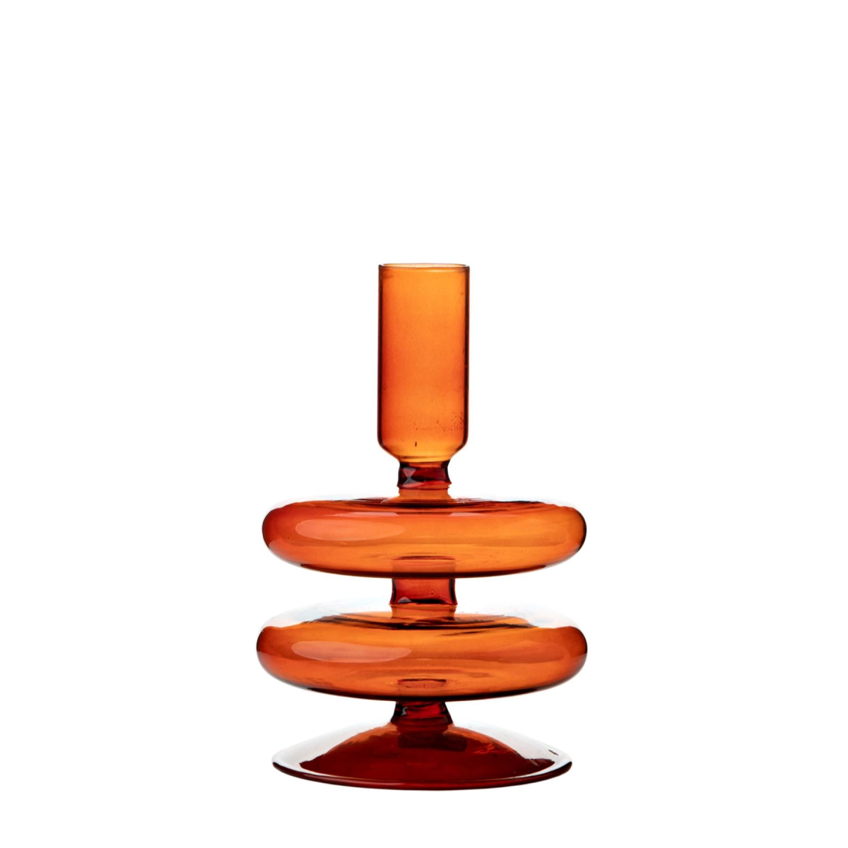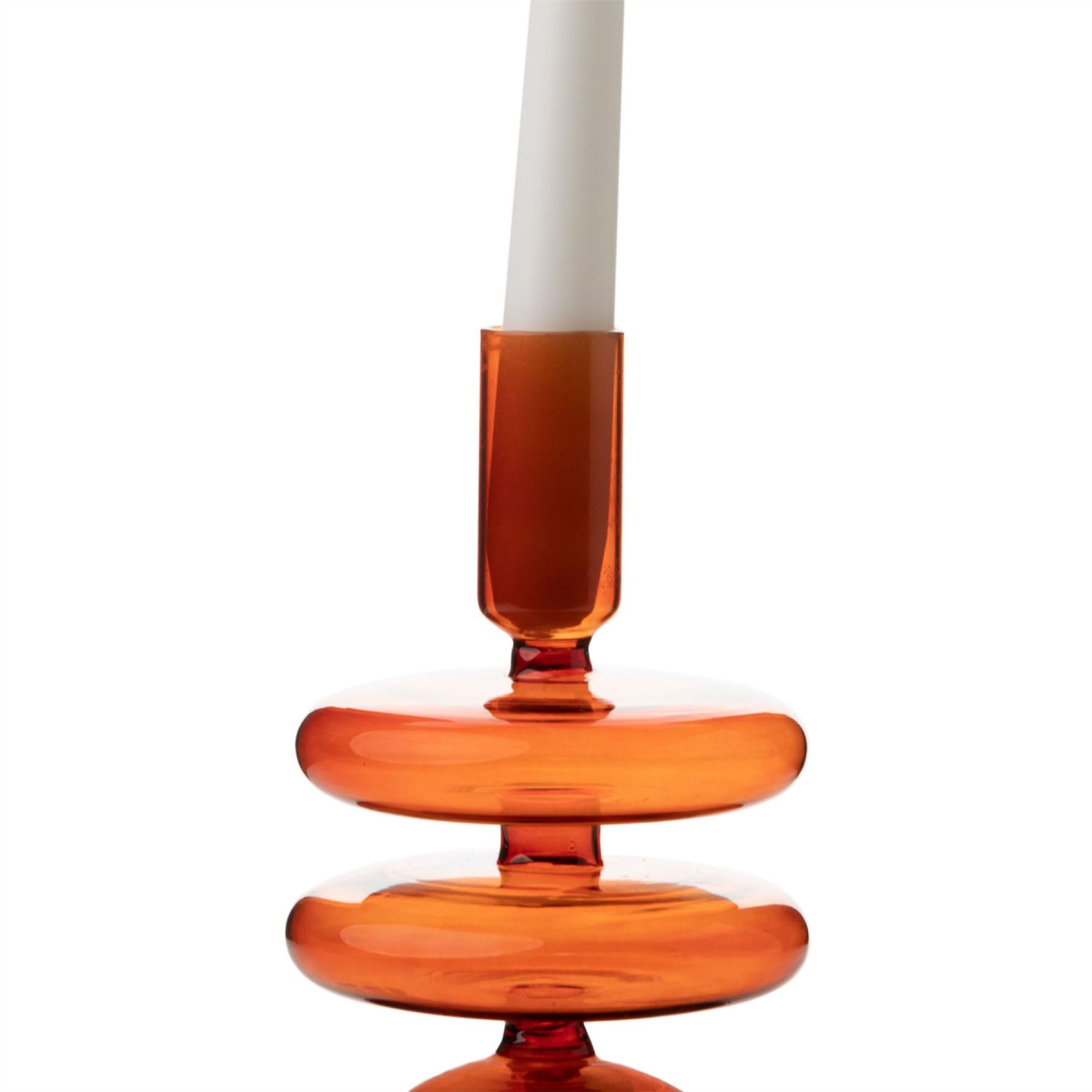 It features smooth, orange glass which is moulded into its unique design. The holder is designed to accommodate a traditional candle of choice.