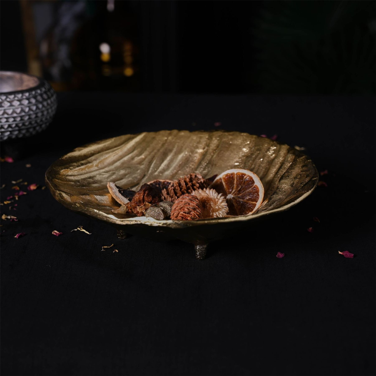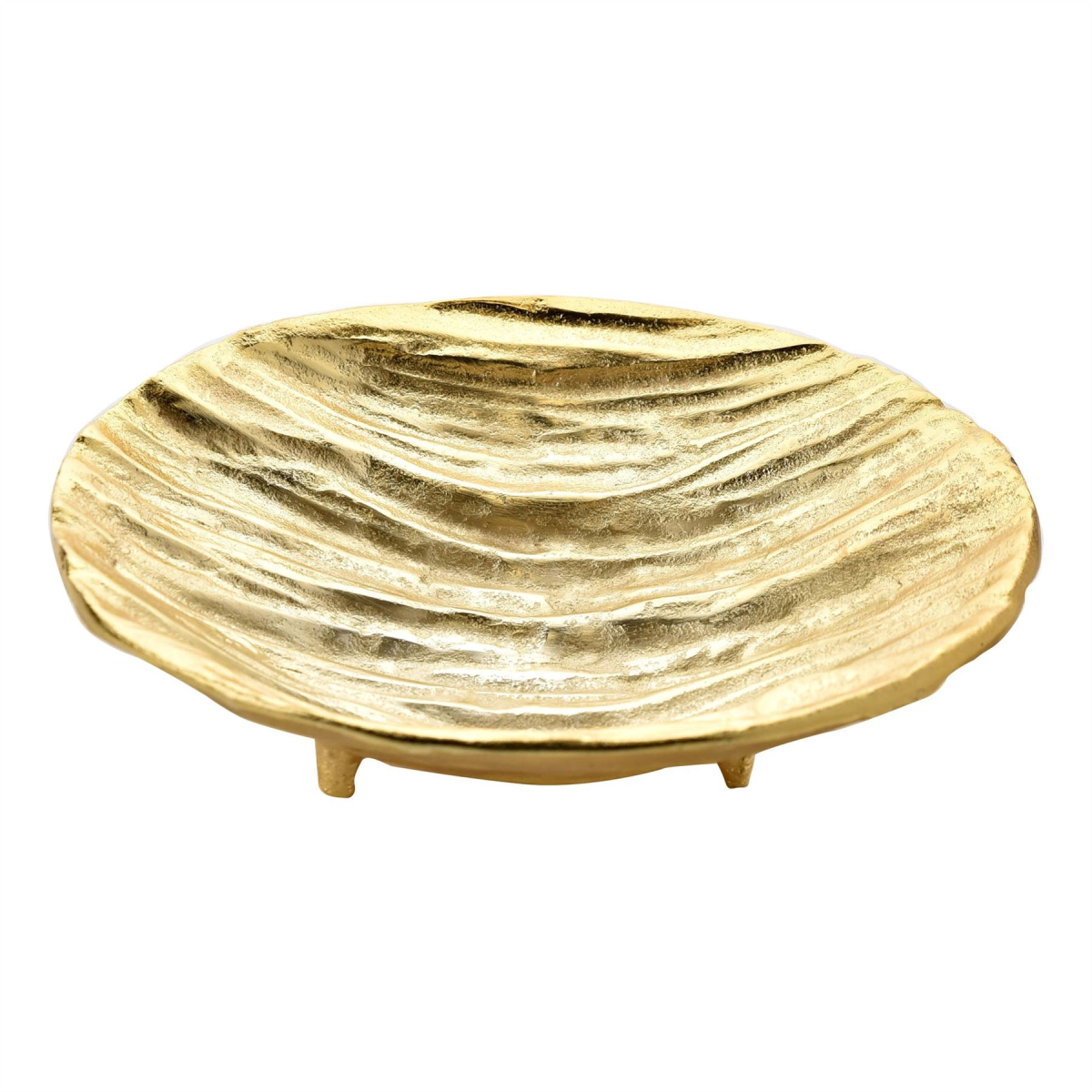 It features a textured design, complete with gold metal finish. The bowl looks exquisite when displayed on its own or when filled with choice items to enhance its classic appearance.