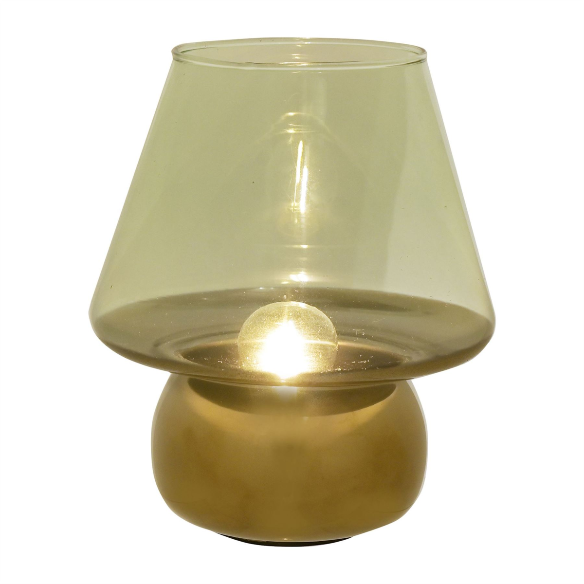 It showcases a stylish, retro design, complete with shiny green and gold finish. Its LED light glows brightly, accentuating its colours.