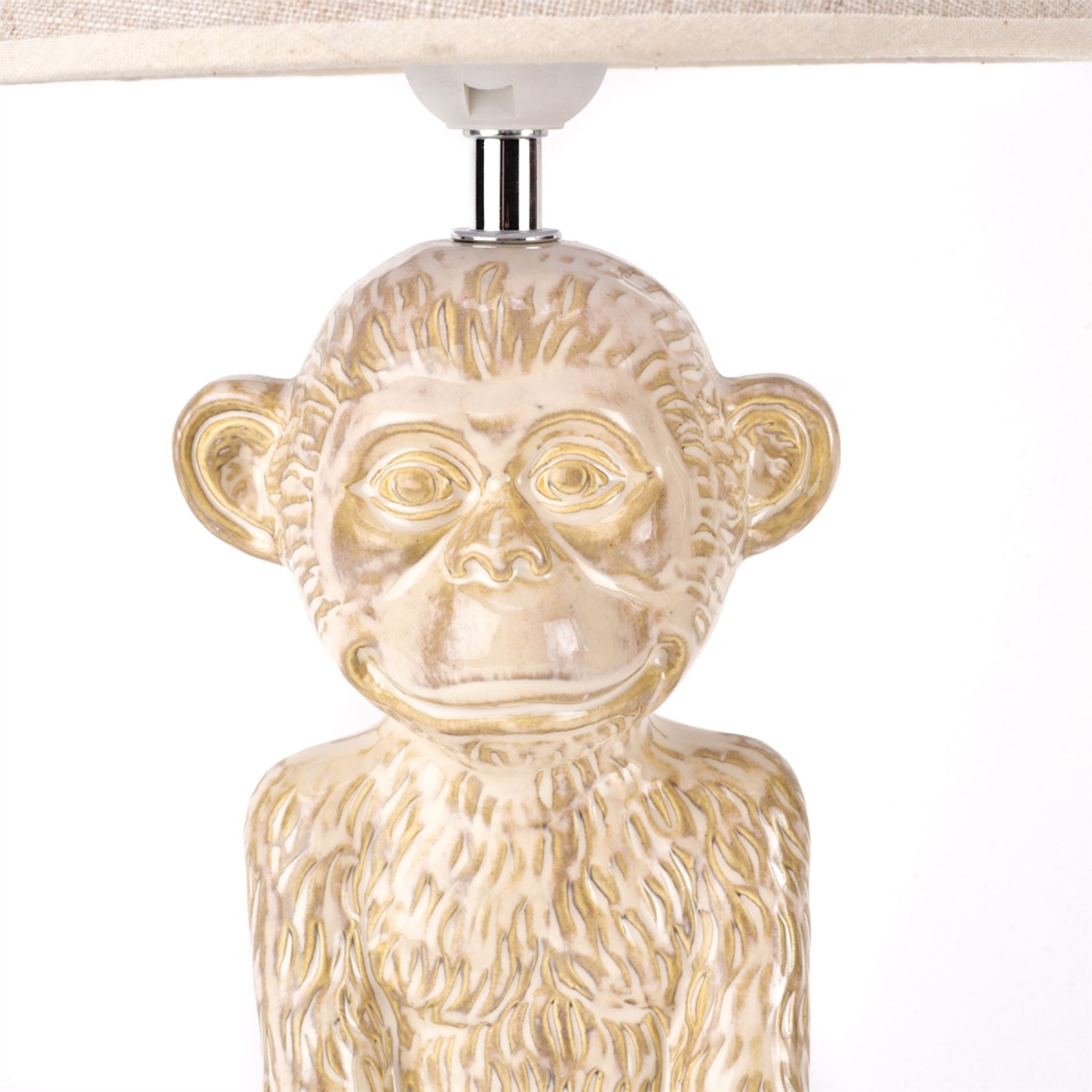 Create a relaxing ambience in your home with this striking monkey table lamp. A stunning gift for animal lovers. Features: - Monkey design - UK plug - Black lamp holder and wire - Requires E27 screw bulb