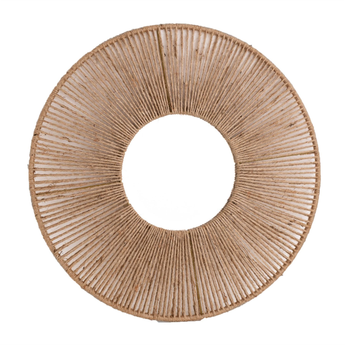 Adding a bohemian vibe to the home with its natural look and textured aesthetics, this gorgeous accessory adds a refreshing touch to any space. Framing a 24inch mirror, this wall piece will give the illusion of a larger, more open space. Details: - Rattan frame - 24inch mirror - Glass and metal