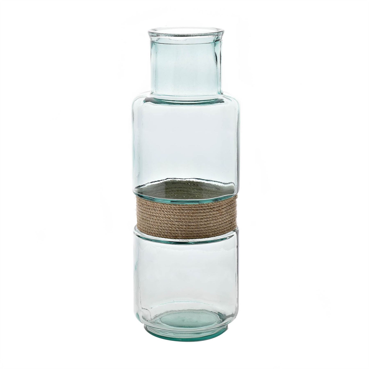 This 100% recycled glass vase features rustic style twine detailing that will add something special to any table or living space. Details: 100% recycled glass vase Blue tinted glass 46cm