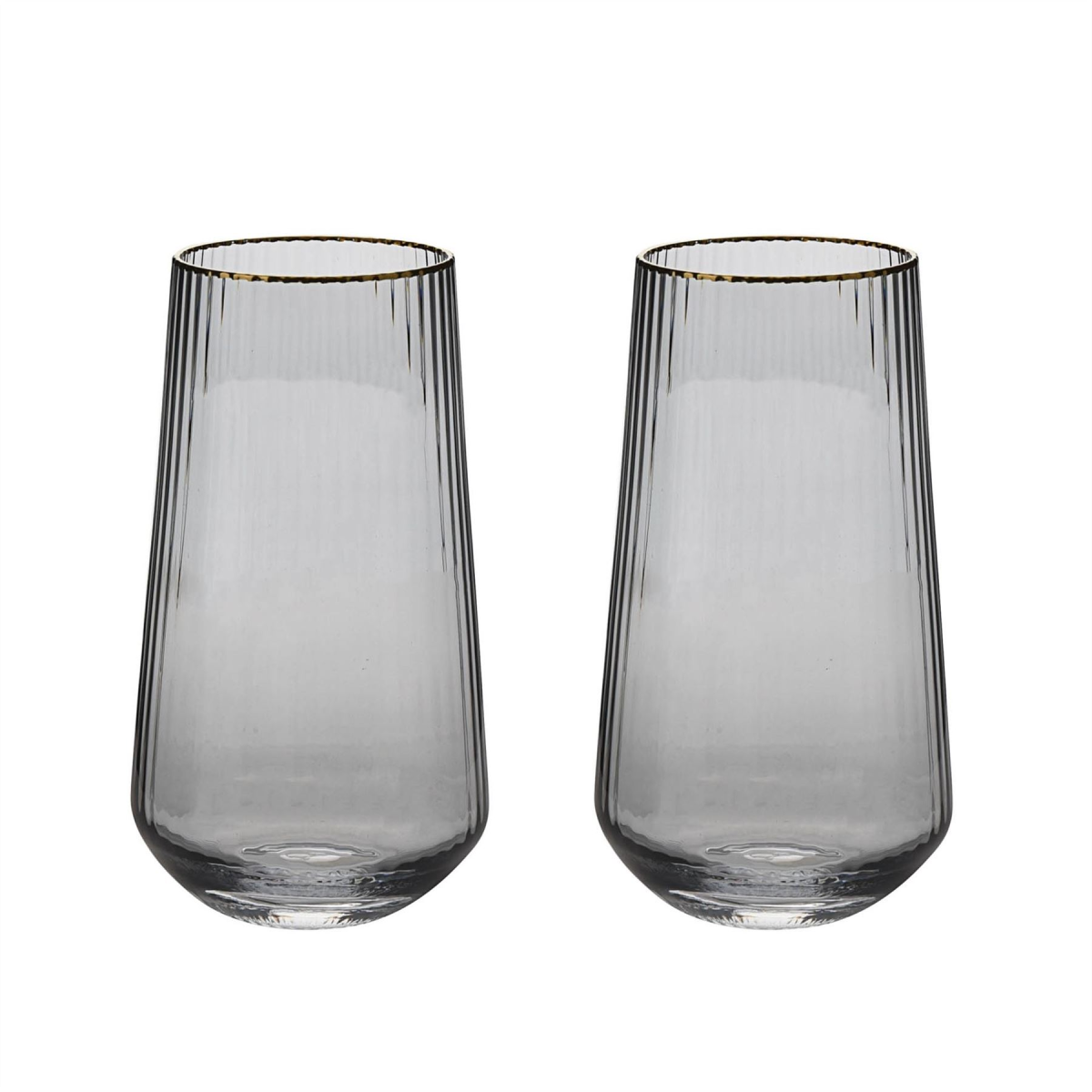 Hestia Set of 2 Grey Hi Ball Glasses with Gold Rim