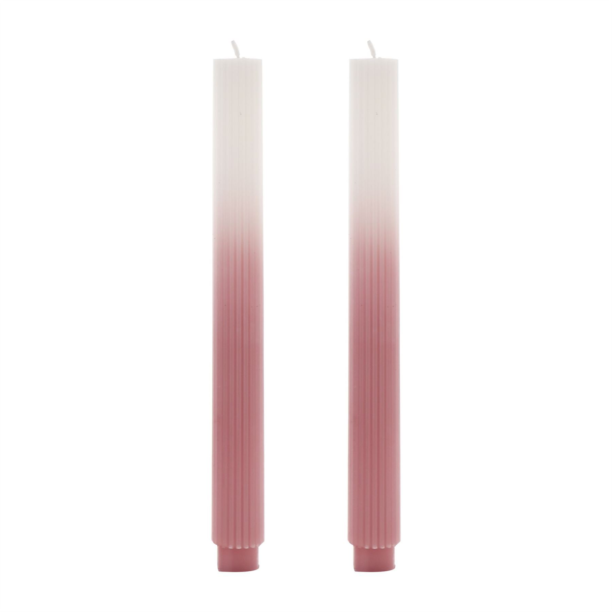 The ombre ribbed taper candles feature a two-tone blend of pink and white colouring. They are made from paraffin wax which will burn brightly for hours.