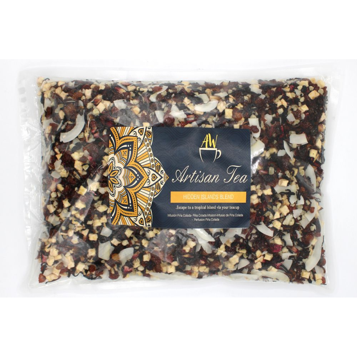 Piña Colada Infusion is a tropical beverage crafted with pineapple , rose hip, apples and coconut chips.