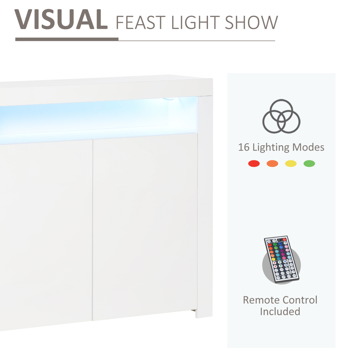 High Gloss LED Cabinet Cupboard Sideboard Console with RGB Lighting White
