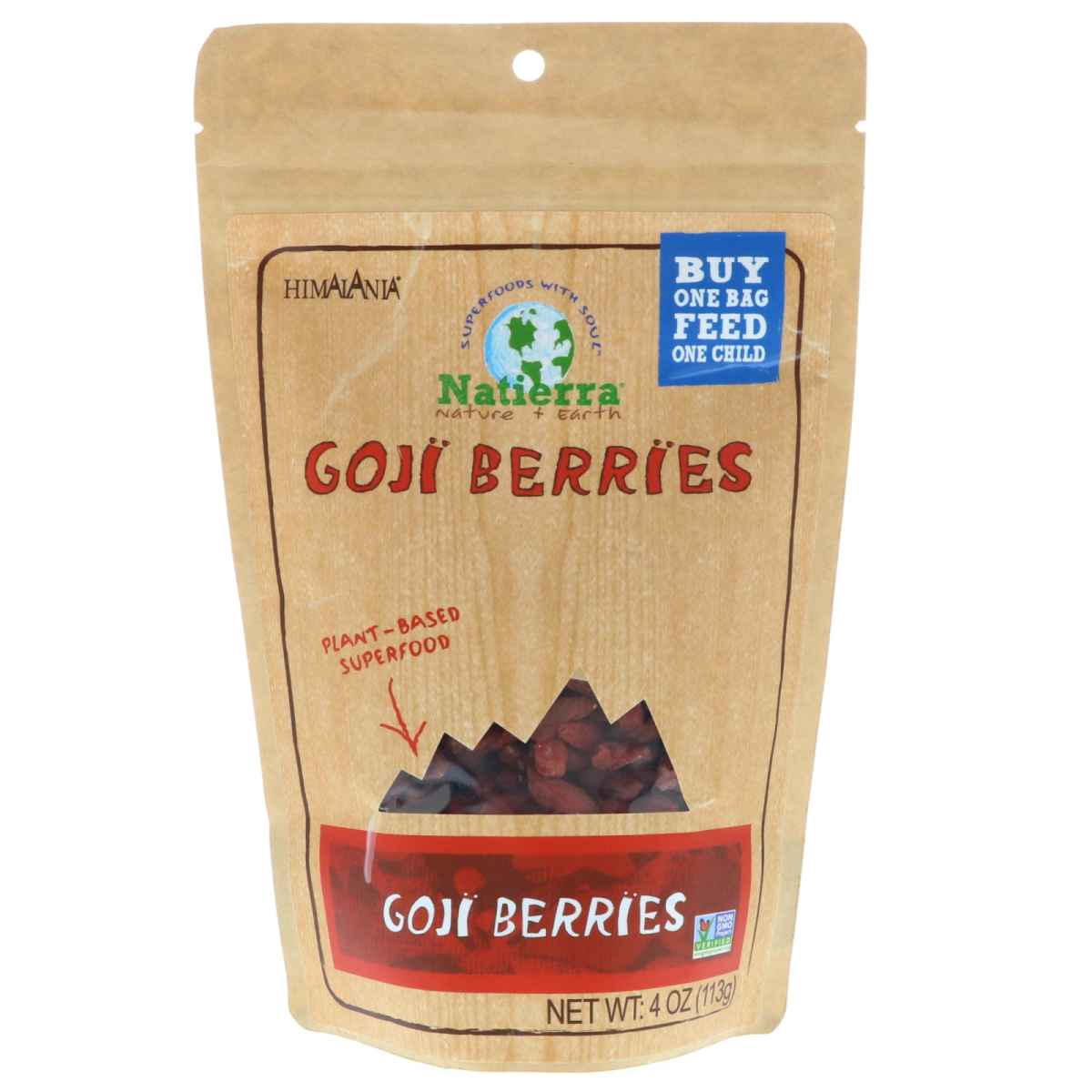 Superfoods With Soul Nature + Earth Buy One Bag Feed One Child Plant-Based Superfood Non-GMO Project Verified Celebrated among nature's most extraordinary fruits, Goji Berries have been used for over 5,000 years in traditional Chinese & Tibetan medicines. Ancient practitioners believed them to help build strength and increase longevity. Naturally sweet, Natierra raw Goji Berries are a delicious addition to a well-balanced diet. Enjoy Natierra Superfoods with soul!