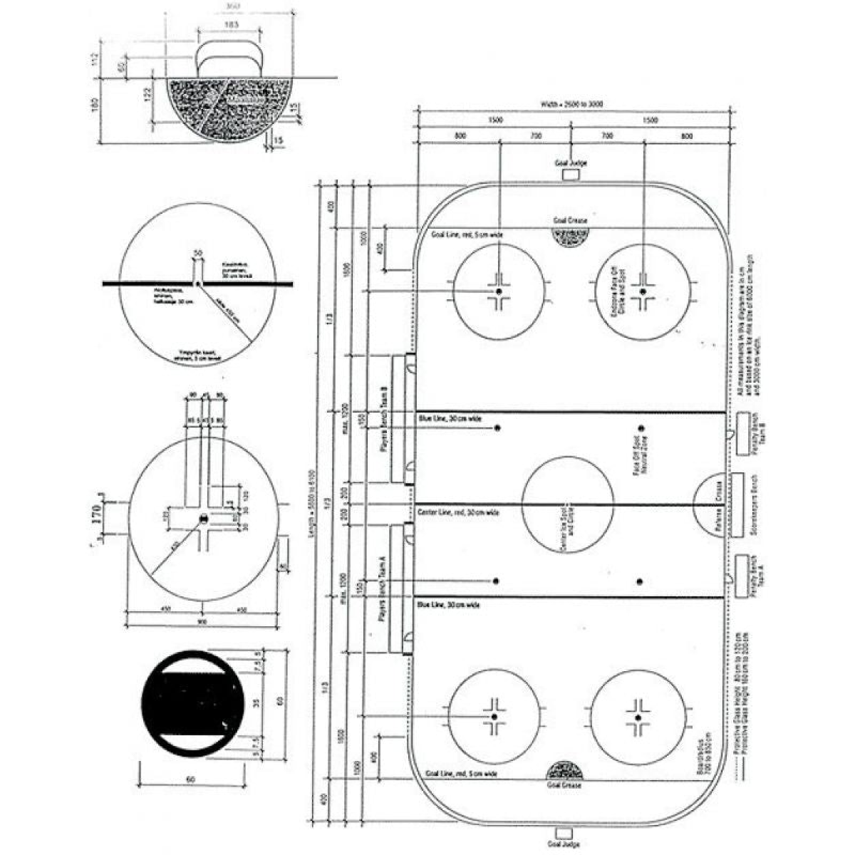 Hockey line set - 2 full sets Lines are laid out on the ice rink and flooded with water to freeze Dimensions and colors comply with IHHF standards The set also includes goal areas and booties
