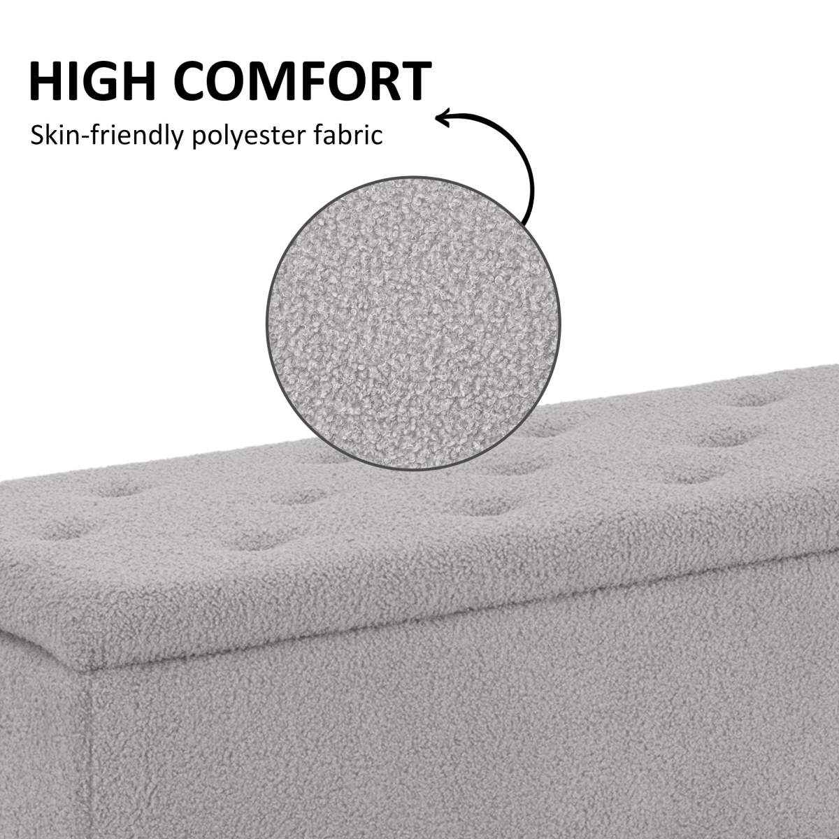HOMCOM 15" Ottoman Storage Box with Wooden Legs and 47L Storage Capacity, Grey