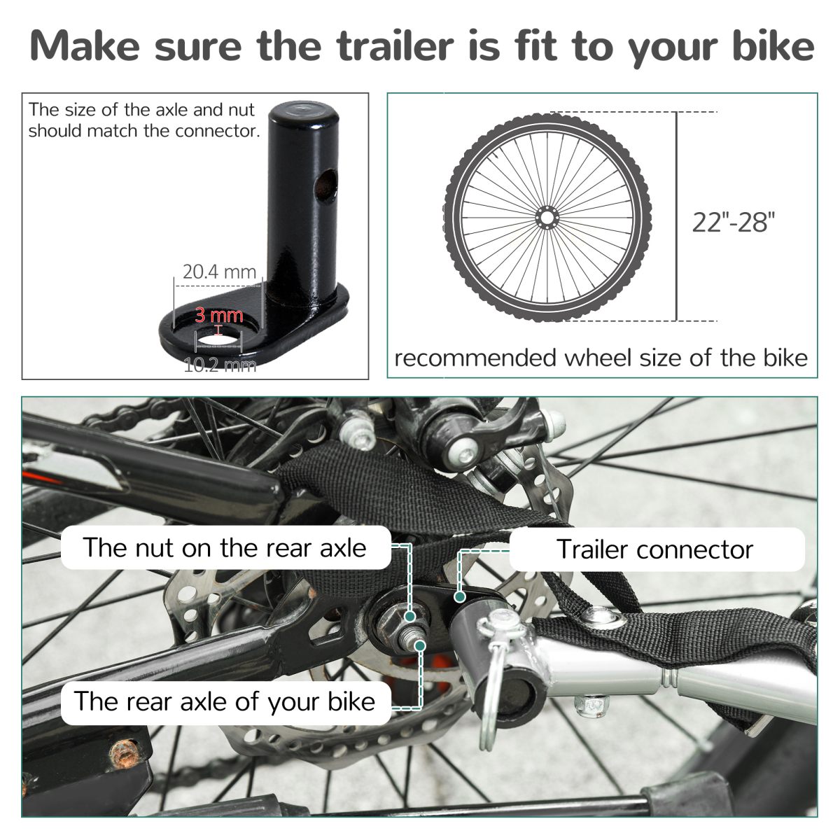 STEEL FRAME: Keeps the structure safely in shape whilst on-the-go, attaches this bike trailer for kids to your bike back wheel via a steel connector.DOUBLE SEAT: The kids bike trailer allows your child to sit with a friend, comes with two five-point harness to keep them safely strapped in.EASY ENTRY: This baby bike trailer features a large roll-up door to get in and out, with windows on the front and sides to let fresh air in. Oxford fabric panels of the child bike trailer allow privacy, with the transparent panels allowing your child to see outside too. Reflectors and a flag for viability whilst on the road.SMOOTH MOVEMENT: The bicycle trailer for kids is fitted with two large wheels, will be comfortable for your child to sit in whilst you are riding. DIMENSIONS: 88H x 130L x 76Wcm. Inside: 56H x 74L x 60Wcm.This bike trailer for children is suitable for 2 kids less than 110 cm of height. AGED 18 MONTHS+. ASSEMBLY REQUIRED.