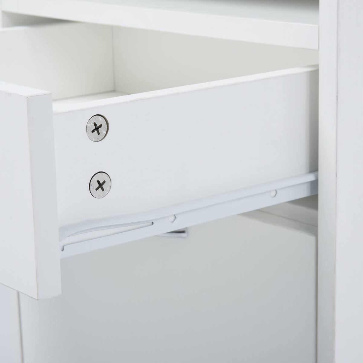 HOMCOM 60cm Storage Cabinet w/ Drawer Open Shelf Metal Handles 4 Wheels White