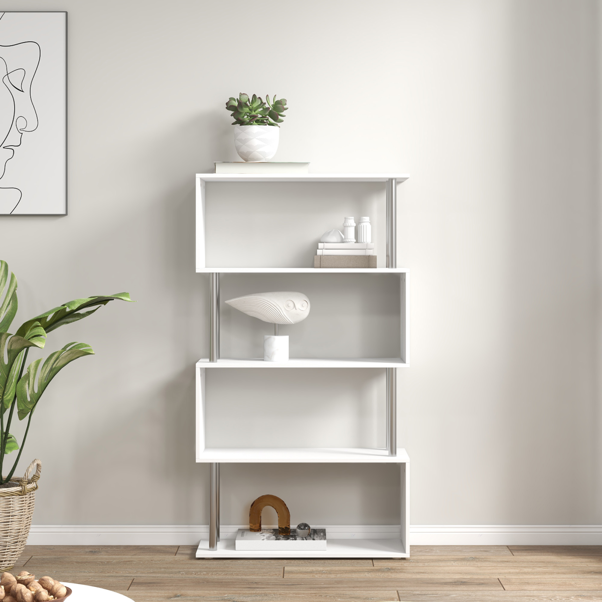 - AMPLE STORAGE: This S-shaped, 5-tier bookcase offers multiple shelves for displaying and storing your favorite books, plants, photos, candles, and collectables in your home or office.