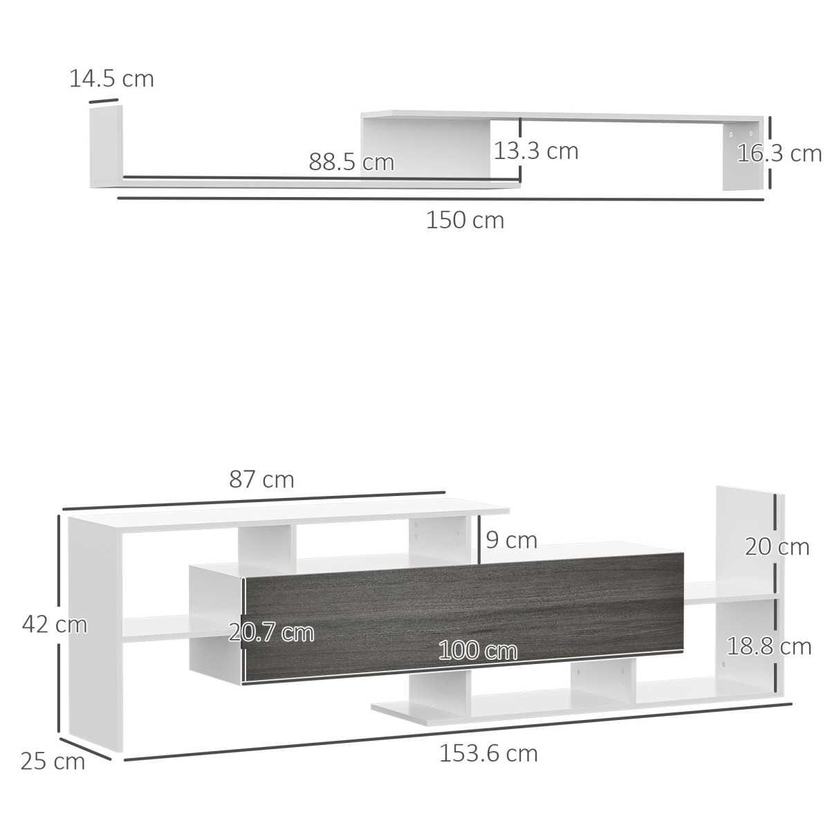 HOMCOM TV Cabinet Unit w/ Wall-Mounted Shelf, Open Shelves White and Grey