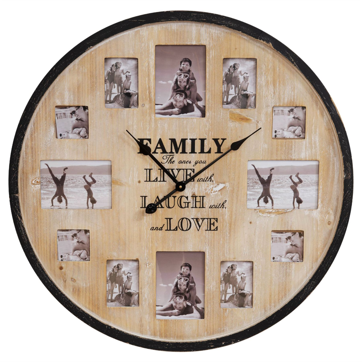 Hometime Wooden Multi Aperture Frame Clock "Family" 80cm
