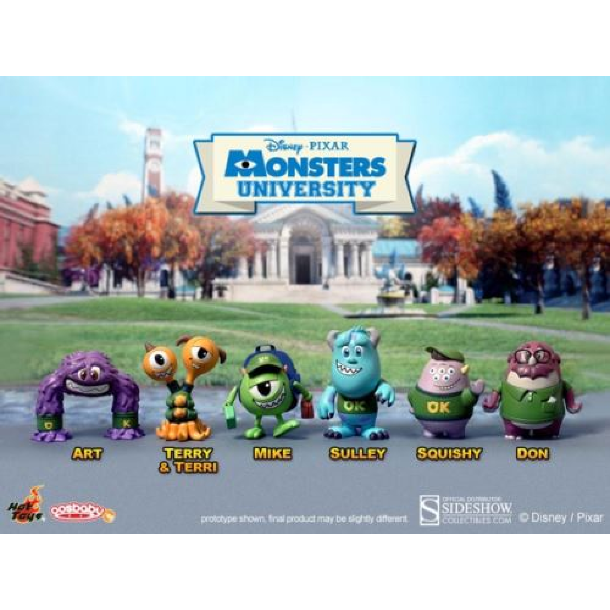 Hot Toys' new cosbaby series, from Disney-Pixar's Monsters University. Each cosbaby stands approximately 3 inches tall, capturing your favorite Monsters University characters in baby form with unique designs. The full set includes all six characters packaged together in a window display box!