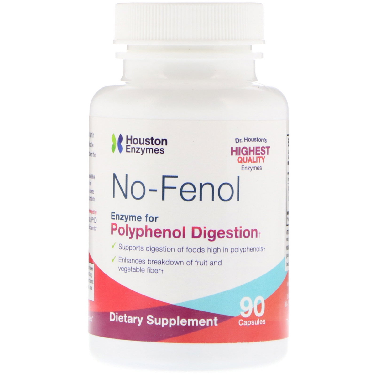 Dr. Houston's Highest Quality Enzymes Enzymes for Polyphenol Digestion Supports Digestion of Food High in Polyphenols Enhances Breakdown of Fruit and Vegetable Fiber Dietary Supplement The Authority on Enzymes All Vegetarian No-Fenol may be helpful for digestion of those foods high in polyphenols. Digestion of fruits and vegetables may also be enhanced as No-Fenols includes enzymes that break down the components of plant fibers. No-Fenol was developed by Dr. Devin Houston, PhD, Enzyme Biochemist