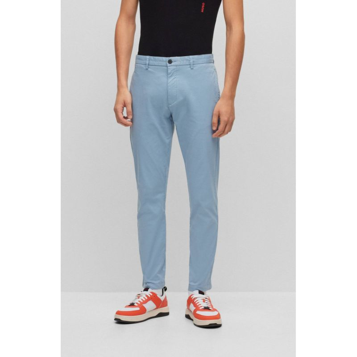 Hugo Boss men's slim-fit trousers in stretch cotton gabardine, light blue (50468314-451)