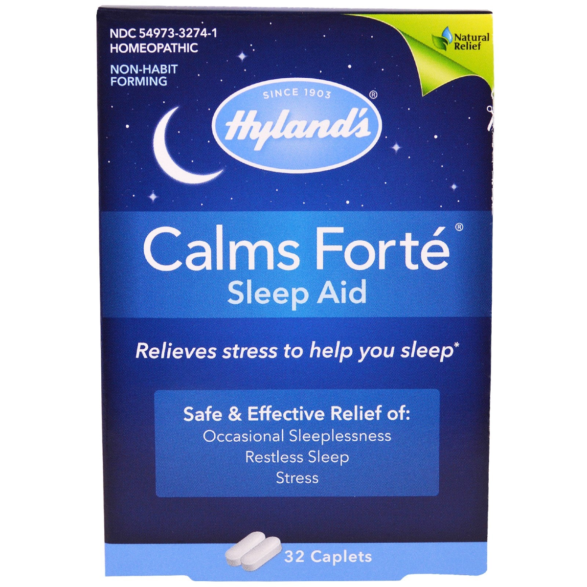 Relieves Stress to Help You Sleep* Natural Relief Homeopathic Non-Habit Forming Since 1903 Wake Up Rested and Refreshed Hyland's Calms Forte eases the symptoms of occasional sleeplessness due to stress. Safe, gentle and effective Non-habit forming No morning grogginess Uses: Temporarily relieves the symptoms of occasional sleeplessness and restlessness with accompanying stress, anxiousness, nervousness and irritability. *The uses for our products are based on traditional homeopathic practice.