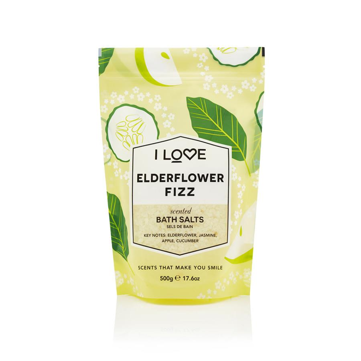 I LOVE's soothing Bath Salts are enriched with delicious fragrance just relax and unwind in their beautiful aroma. With 99% of naturally derived ingredients including ACB Bio-water Bamboo and natural fruit extracts they will leave your skin feeling silky soft and lightly fragranced.Enjoy the uplifting and calming scent of Elderflower with this 500g pouch of I LOVE Signature Elderflower Fizz Bath Salts.