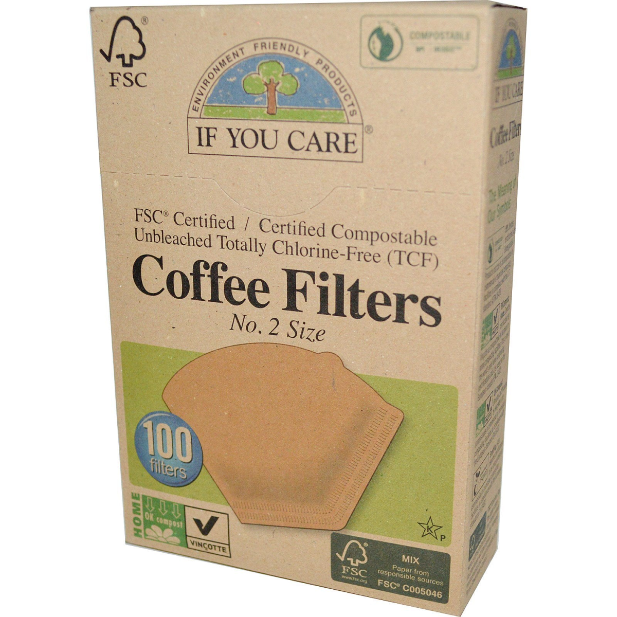 Environment Friendly Products FSC Certified Unbleached Totally Chlorine-Free (TCF) Kosher Pareve Double-Seam Filter for Strength Why Use If you Care FSC & Compostable Certified Unbleached TCF Coffee Filters? FSC, the Forest Stewardship Council, is an inter antinational non-profit organization that promotes responsible forest management through a rigorous certification system which certifies wall managed forests and the products that come from them (wood, paper etc.). Yearly more than 30 million acres of natural forest are destroyed by illegal logging and land clearance for development or agriculture. When you buy If You Care FSC Certified Coffee Filters, you know that the paper came from forests that comply with the most rigorous environmental and social standards. That is why FSC is endorsed by many highly regarded non-profit environmental organizations. If You Care Coffee Filters are made from unbleached, totally chlorine-free (TCF) paper. Since no chlorine or chlorine derivatives were used to produce these filters, no chlorine or chlorine derivatives get dumped into our lakes, rivers, and streams. Features Our coffee filters feature a "never break" double seam, which assures the strength and integrity of the filters. These coffee filters are designed to give lovers of freshly ground coffee maximum pleasure while having the least possible environmental impact. Our coffee filters feature a “never breakâ€