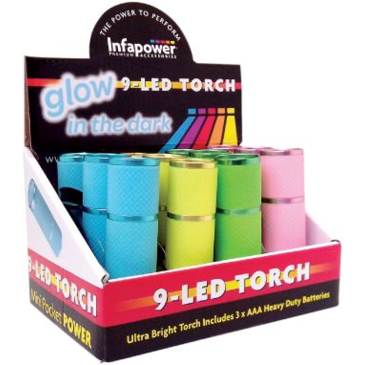 Infapower 9-LED Torch Glow in the dark (Pack of 12)