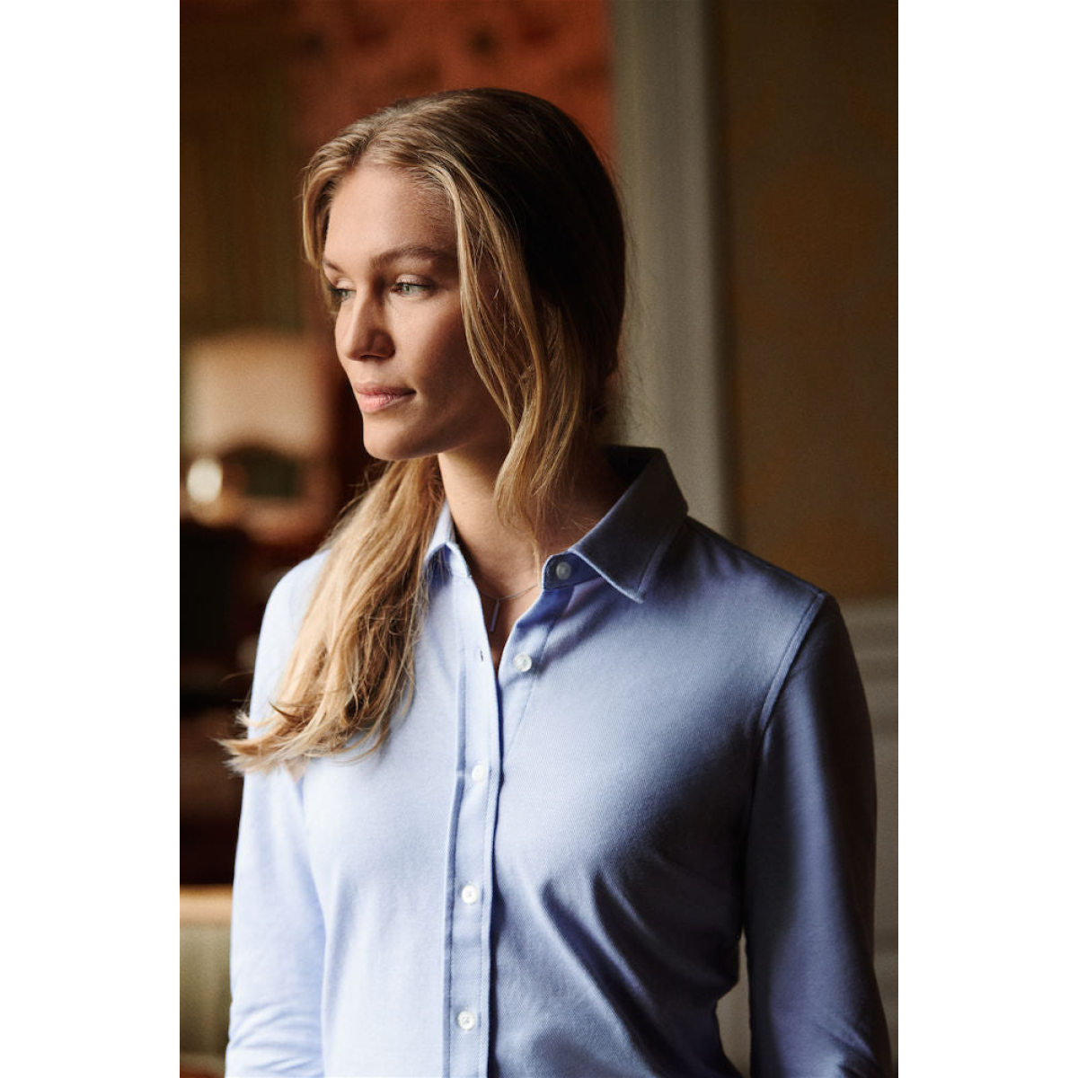 This Oxford-look shirt features woven details inside the collar and side slits, and is perfect as a work shirt and for any other kind of occasion.