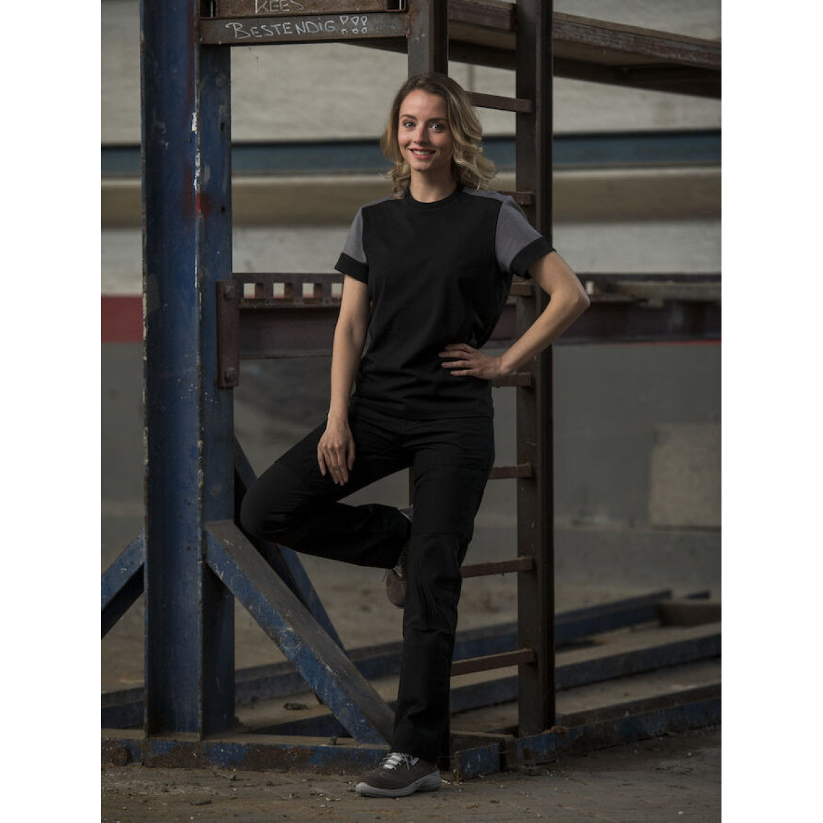 This t-shirt has a thoughtful two-colour design, with contrast colour on the shoulders and sleeves and contrast tape on the neck. The neck rib has four layers for better stability.