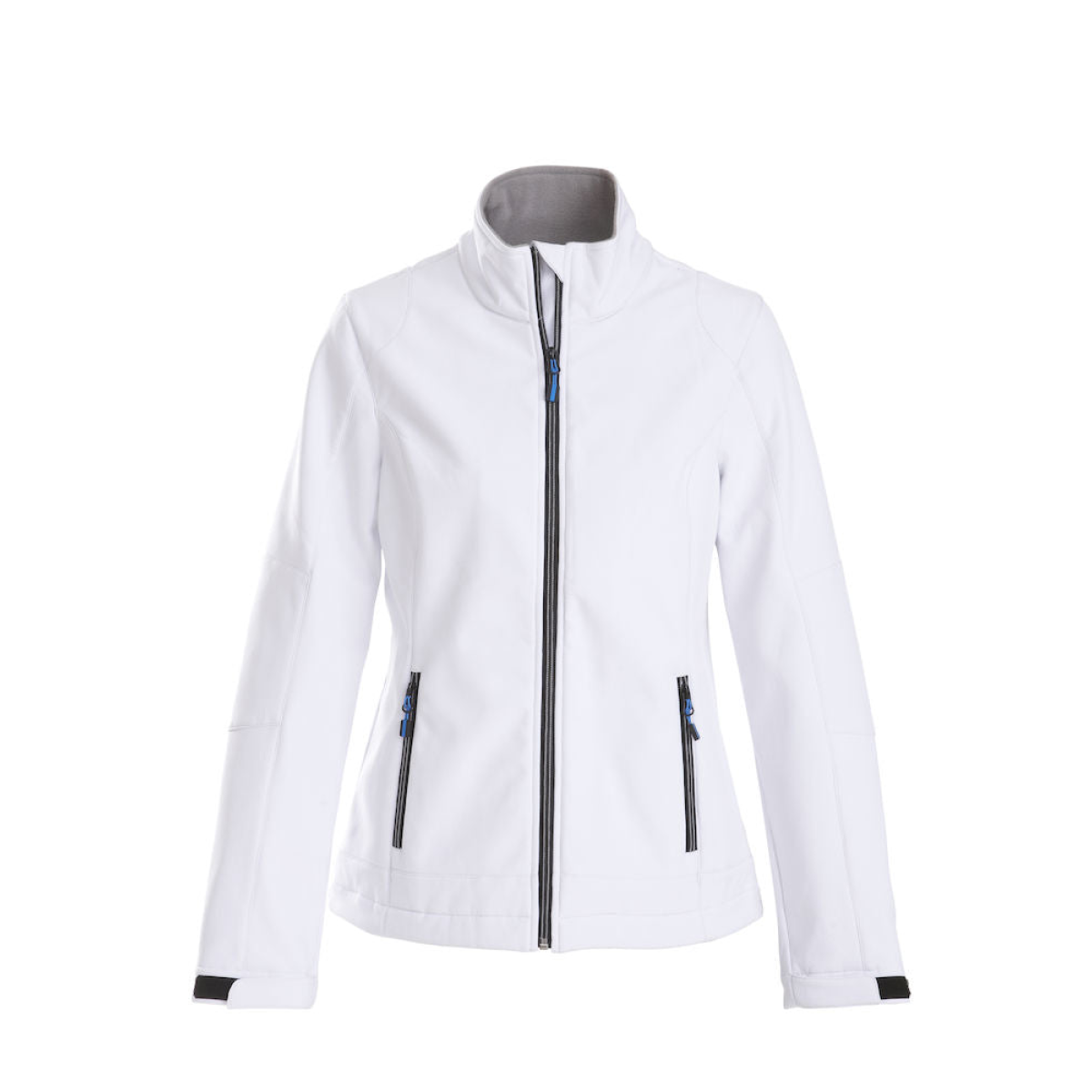 The jacket features two outer zipped pockets, which, along with the full front zip all have zip pullers in a contrast colour. The front zip also has zip protection at the collar.