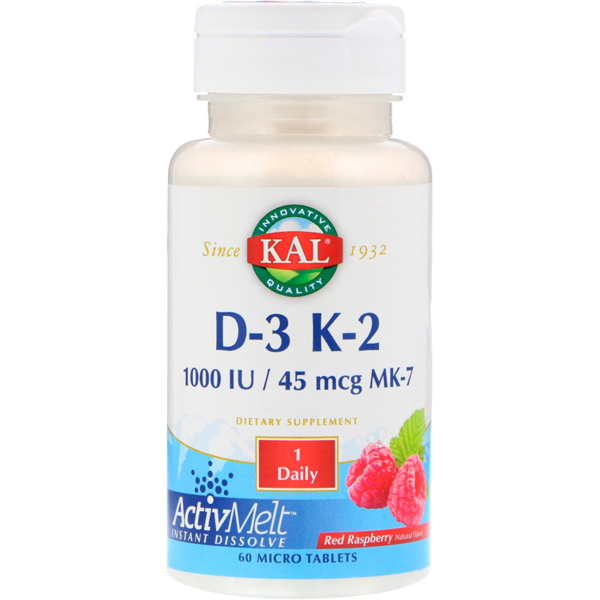 KAL, D-3 K-2, Red Raspberry, 1000 IU / 45 mcg MK-7, 60 Micro Tablets