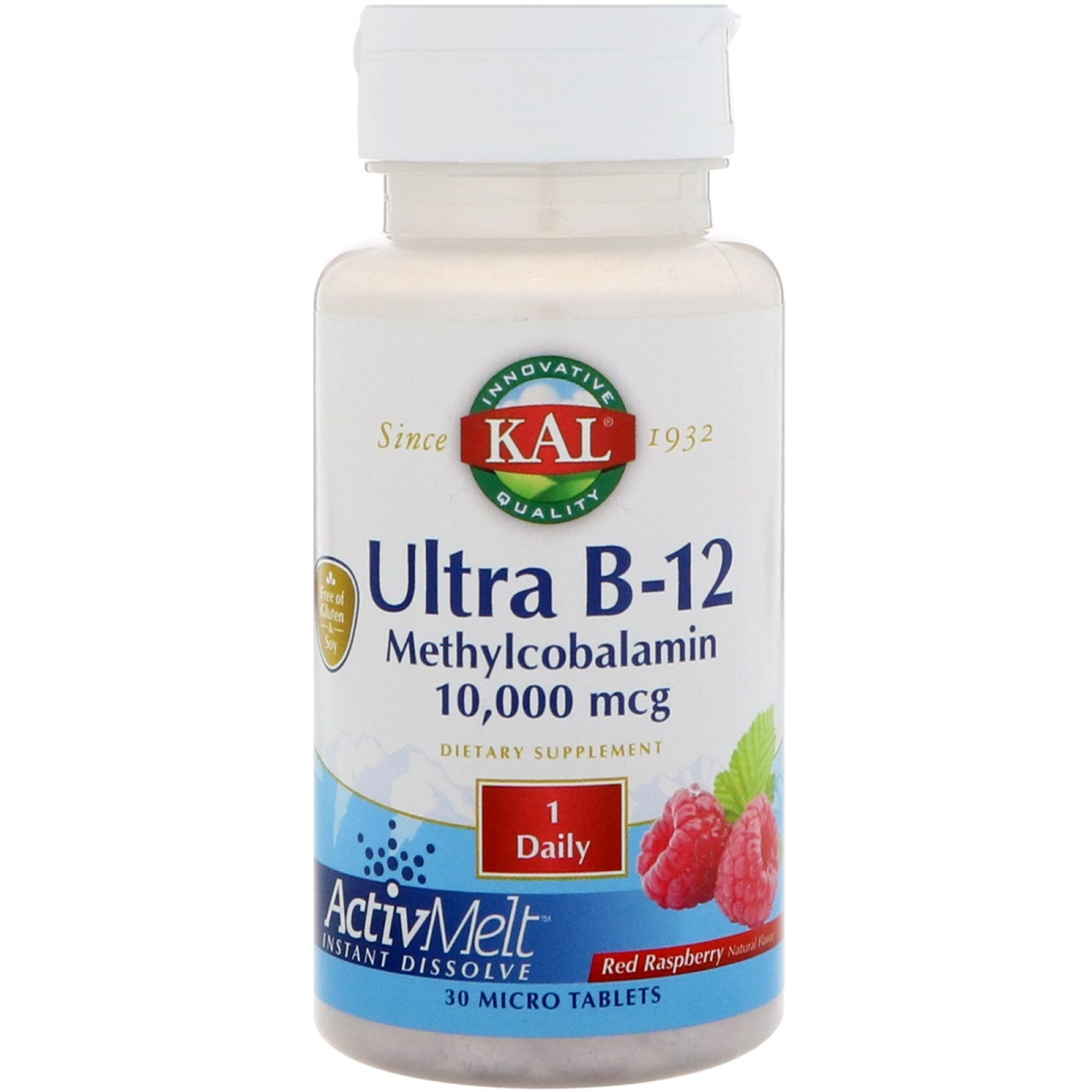 KAL, Ultra B-12 Methylcobalamin ActivMelt, Raspberry Flavor, 10,000 mcg, 30 Micro Tablets
