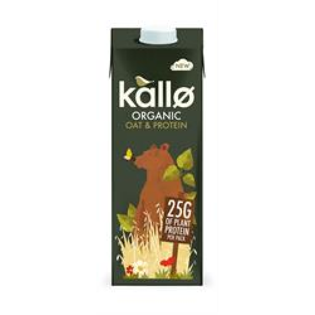 Kallo Organic Oat & Protein Drink, 1l 25g of plant protein per pack. Vegetarian and vegan friendly, Source of fibre, No gums, No added sugar*, No harmful pesticides or fertilisers. *Contains naturally occurring sugars.